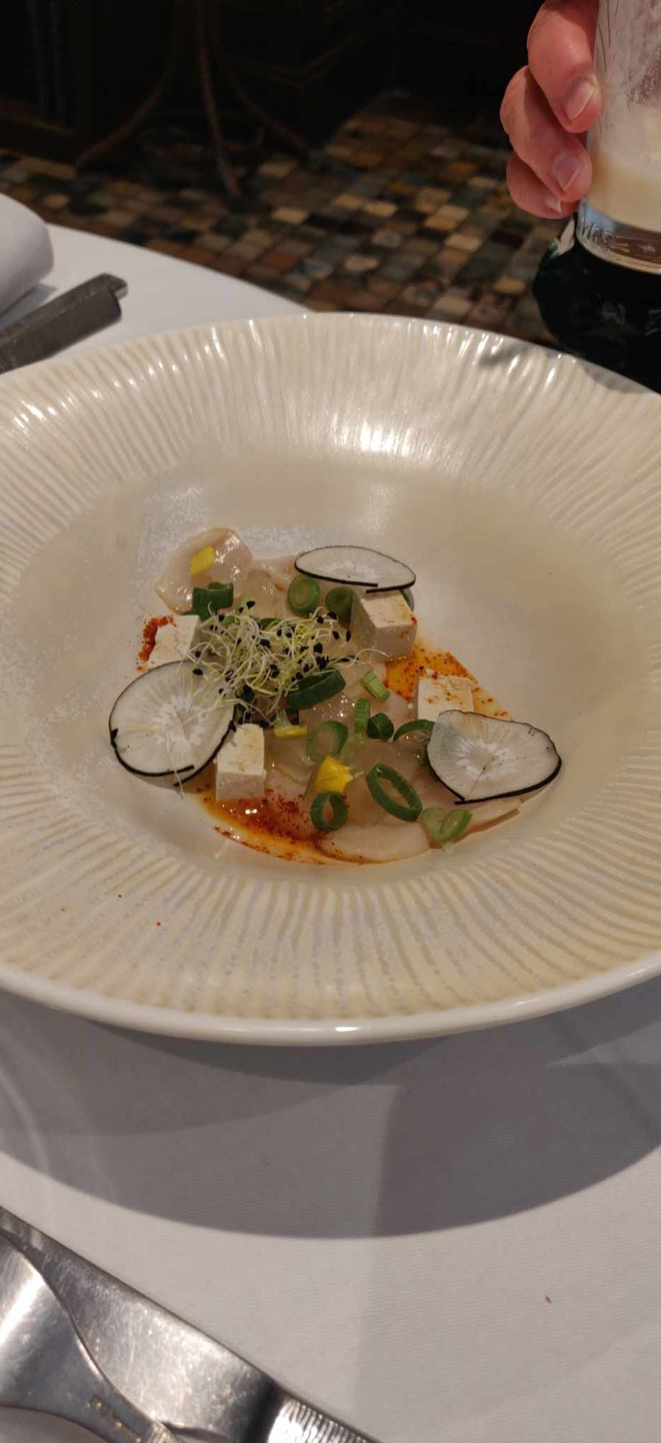 Déçu du comportement d une serveuse, Carpaccio d espadon 3 assiettes dont une ressemblait à des escalopes fines et non à du carpaccio. Dommage Dans l ensemble dîner bon.