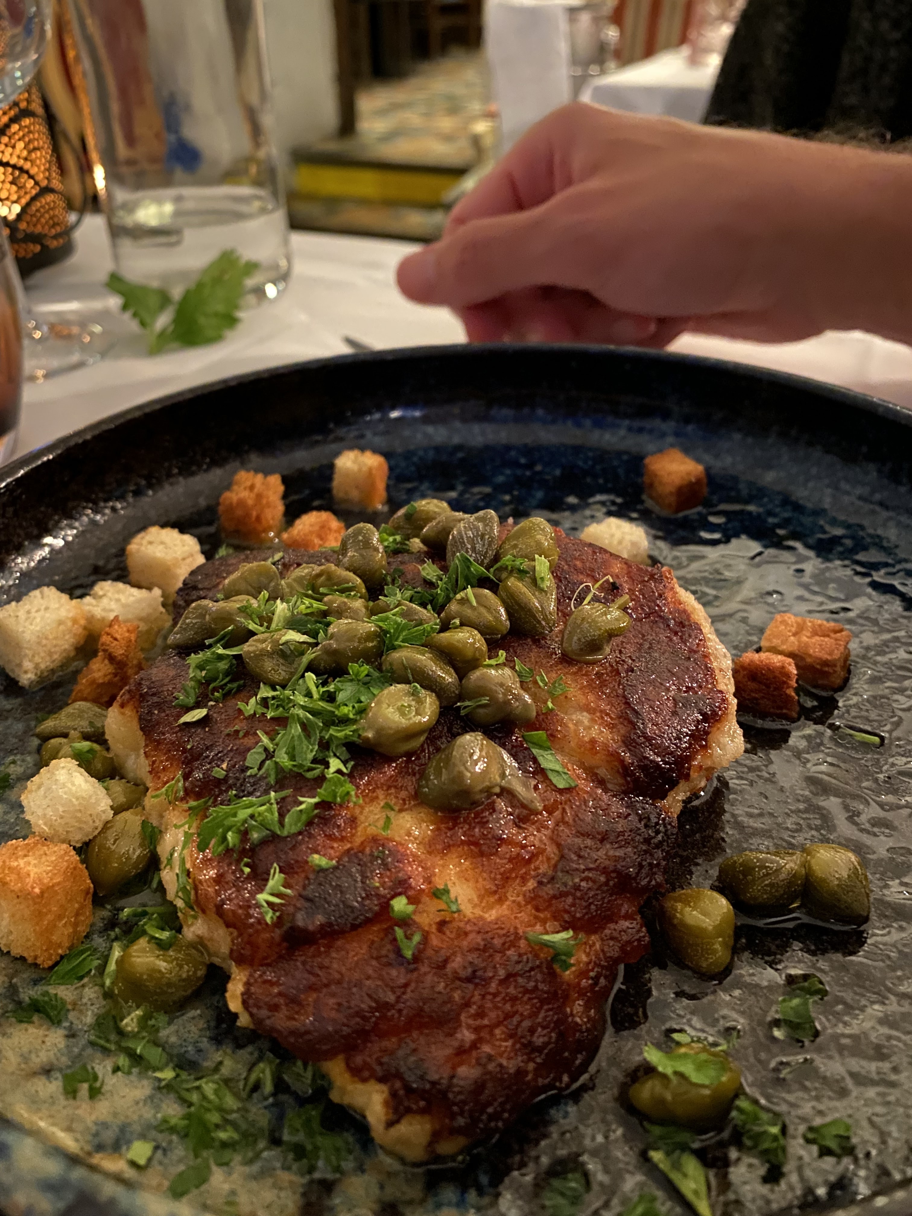 Nous avons été très déçus par les plats qui semblaient être préparés à l’avance et réchauffés; les cannellonis baignaient dans la sauce, idem pour l’agneau de 7 heures.le tiramisu présenté dans une assiette à soupe était trop liquide . En complément d’une salade avec des morceaux de pamplemousse, de simples croûtons accompagnés la lotte panée..Nous avions dîné il y a quelques temps dans ce restaurant sans avoir gardé une si mauvaise impression. C’est surprenant pour un restaurant classé « maîtres restaurateurs » ou nous nous attendions à plus de saveurs et de subtilités dans les plats.