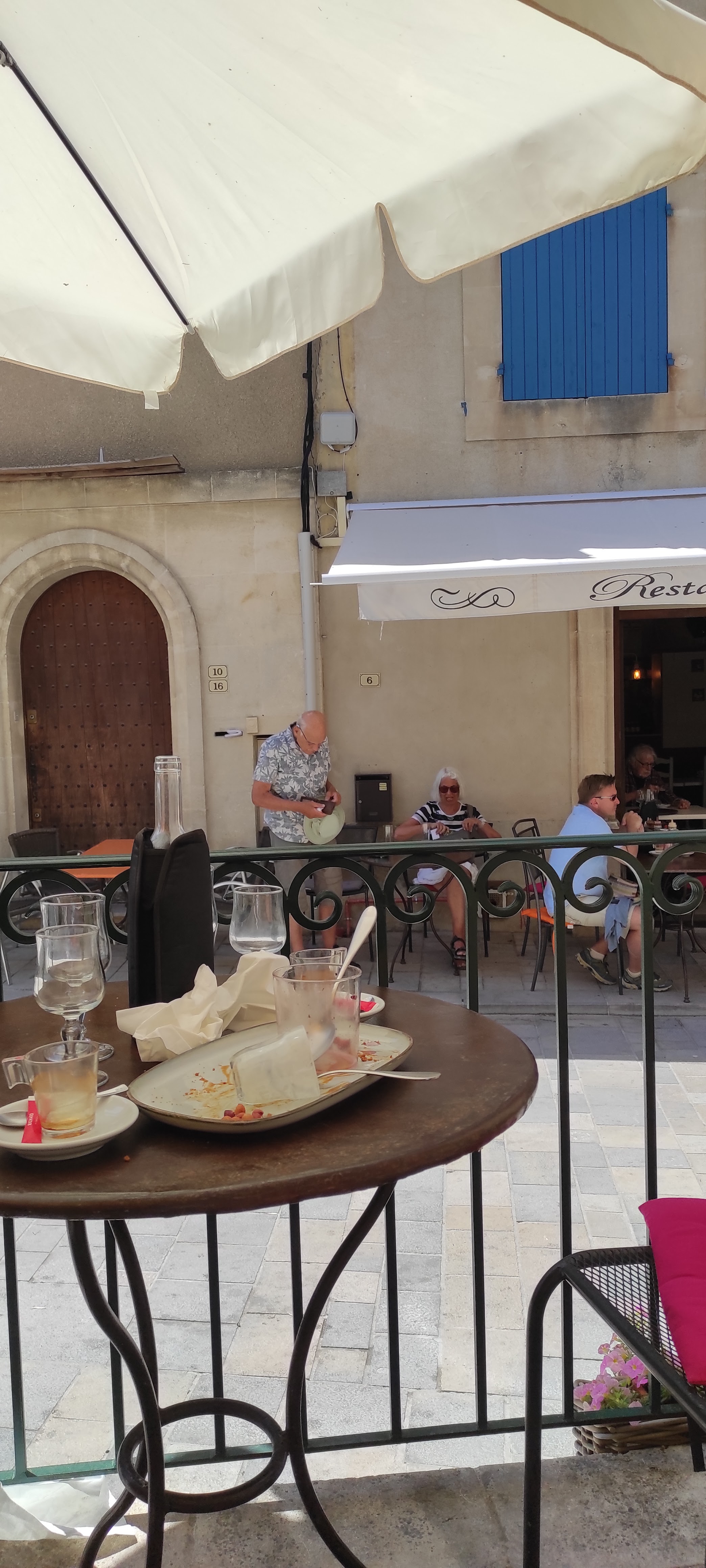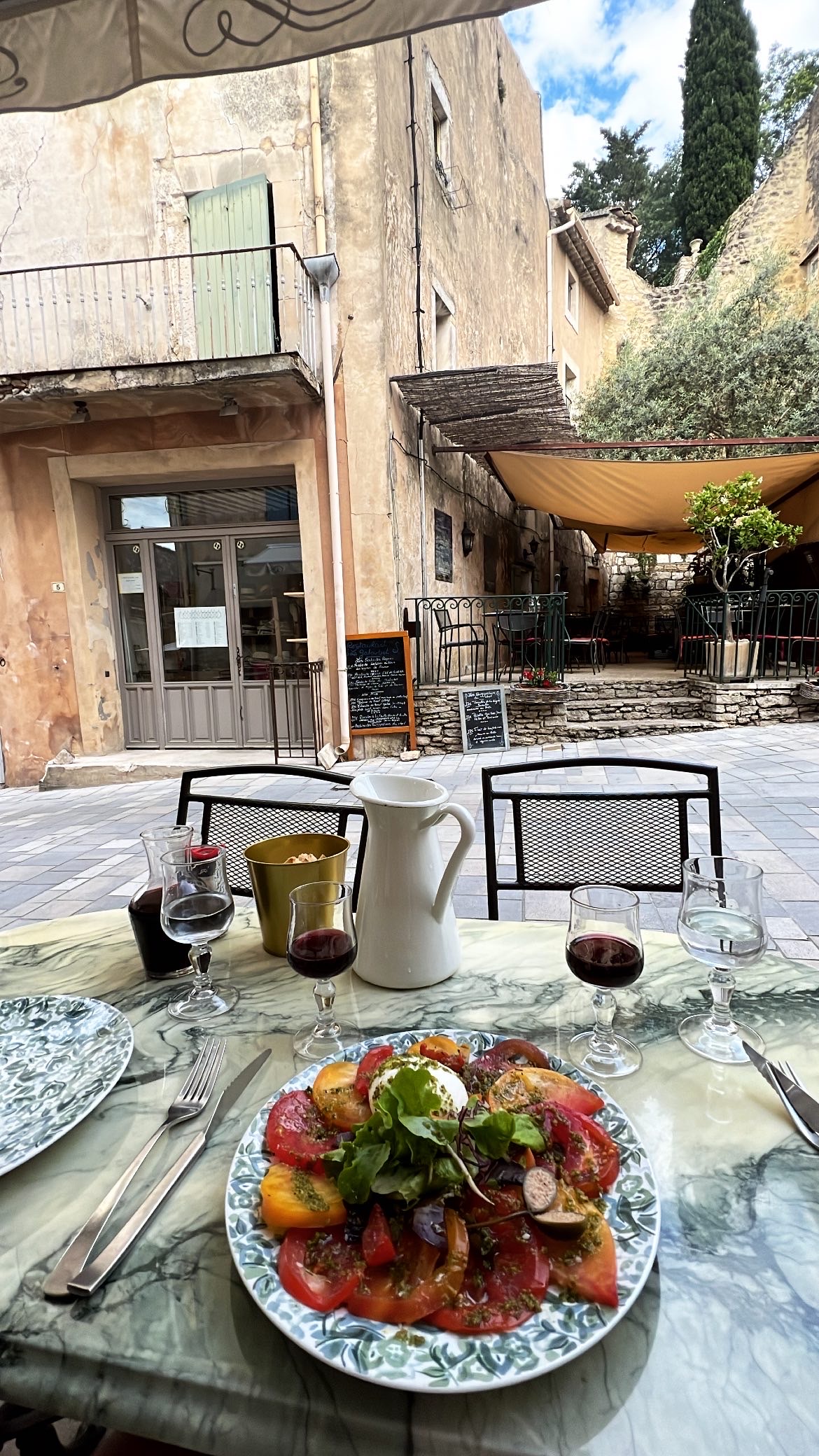 Nous avons séjourné à Ménerbes pendant une semaine et avons pris 3 délicieux repas ici et bien souvent nous avons juste pris un pichet de rosé le soir. Le personnel était très sympathique et accueillant et le service excellent avec des prix raisonnables. Hautement recommandé. Merci beaucoup.