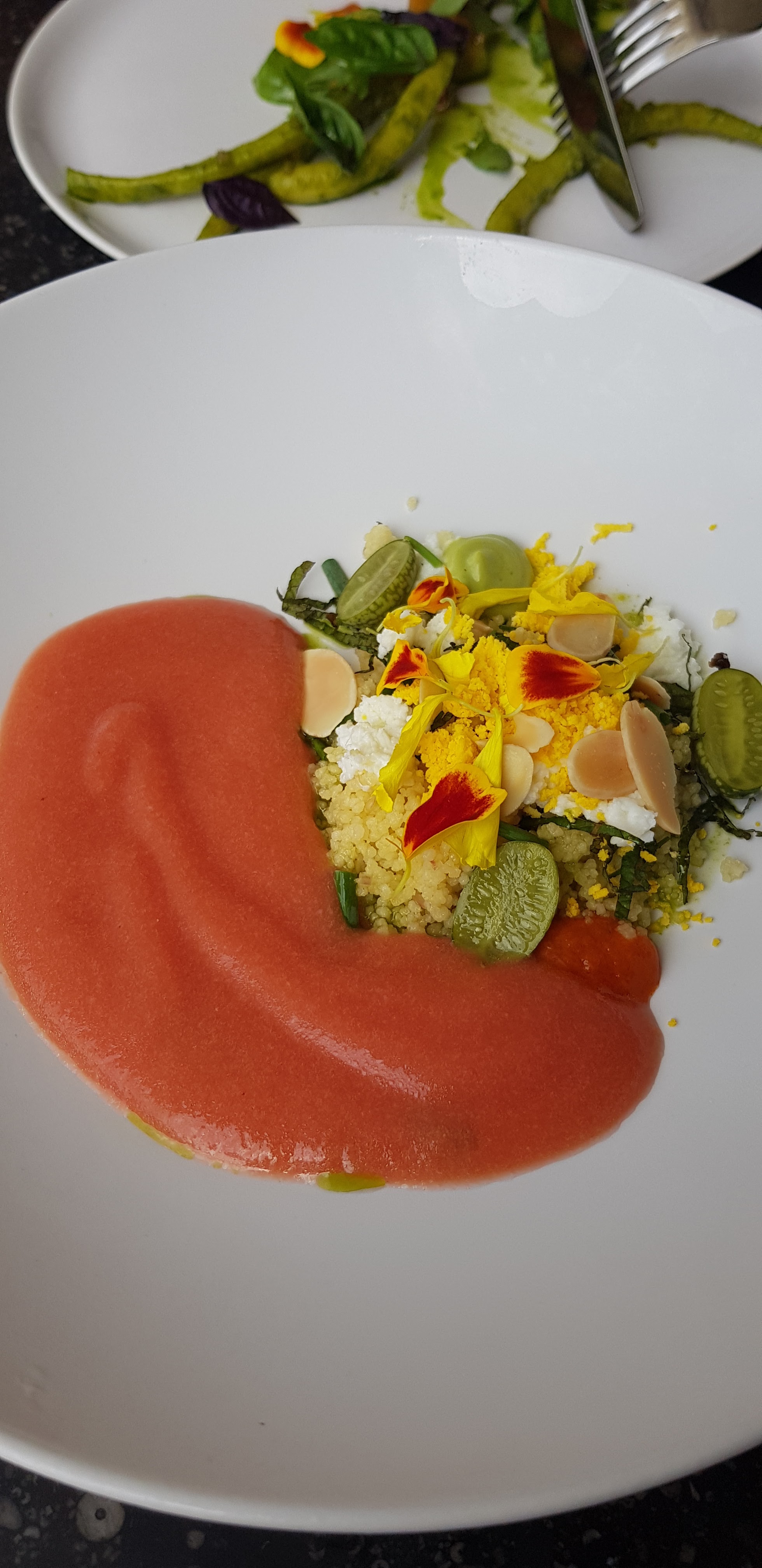 La deco,le service, l endroit très surprenant, et bien sûr la cuisine, les plats très recherchés, avec des produits sains et des mariages de saveurs inattendues. Un endroit à découvrir d urgence .bref un bel endroit, une belle soirée