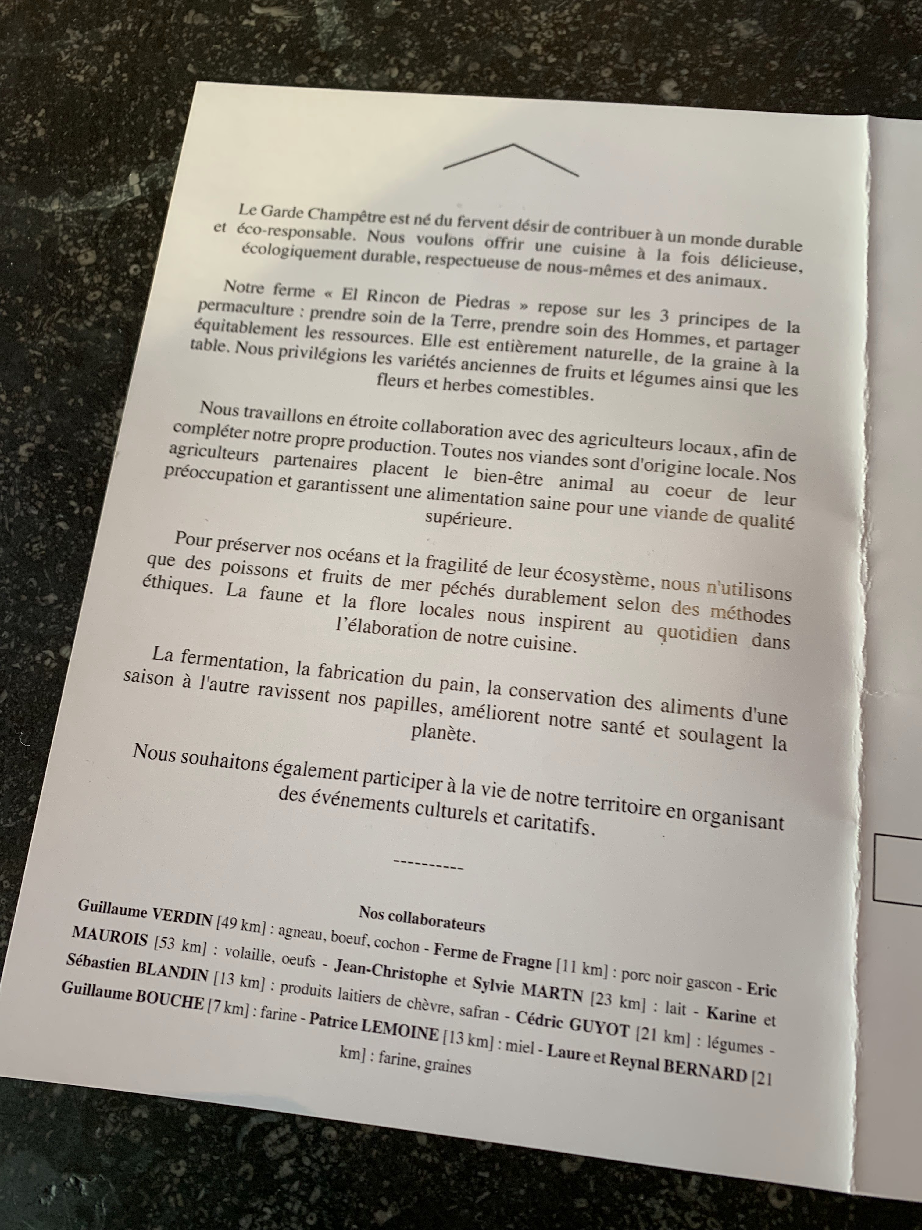 Merci à toute l’équipe du garde champêtre pour cette soirée hors du temps. Notre deuxième passage dans cet établissement, et encore une fois nous nous sommes régalés. Le lieu, le service et la cuisine sont incroyables. Merci au chef et à son équipe pour ce voyage culinaire, cette justesse et cette délicatesse.