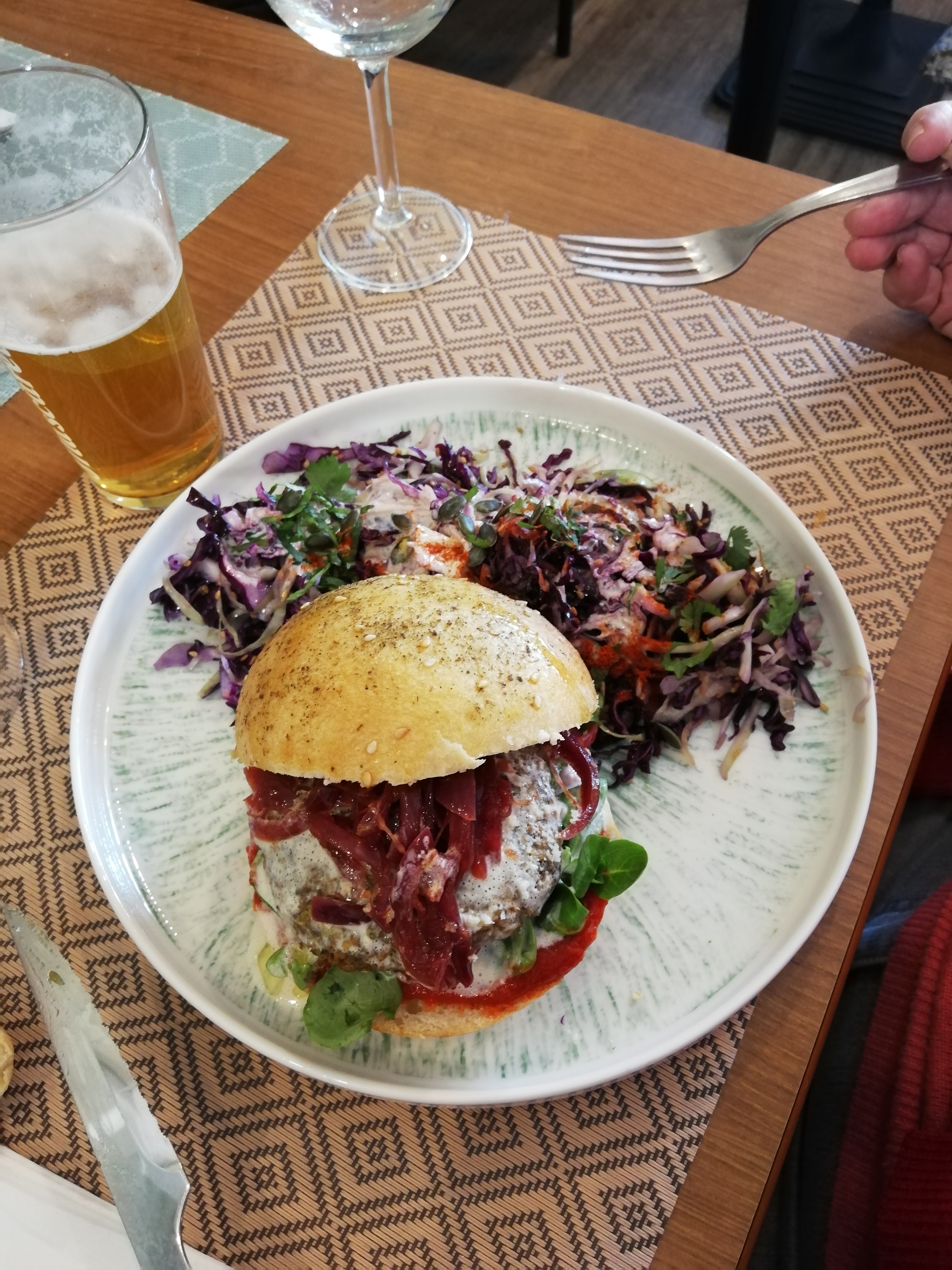 Accueil très sympathique, belle association entre saveurs de la cuisine libanaise (le hoummous aux piquillos est une tuerie) et traditions régionales, excellent verre de graves rouge, bref : je ne peux que recommander le Bocal Local de Bazas 🤗