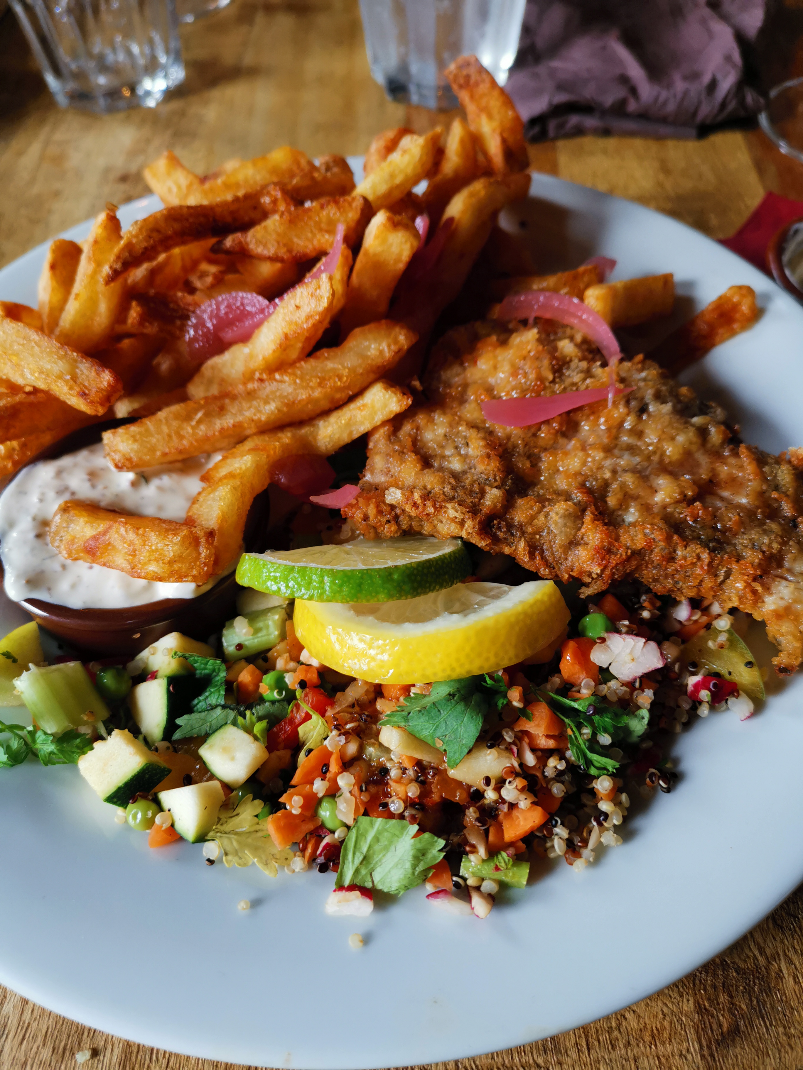 Déçu par le fish & chips. Sincèrement moi qui ai vécu et a beaucoup visité le Royaume Uni, j'ai l'impression d'avoir mangé du surgelé.