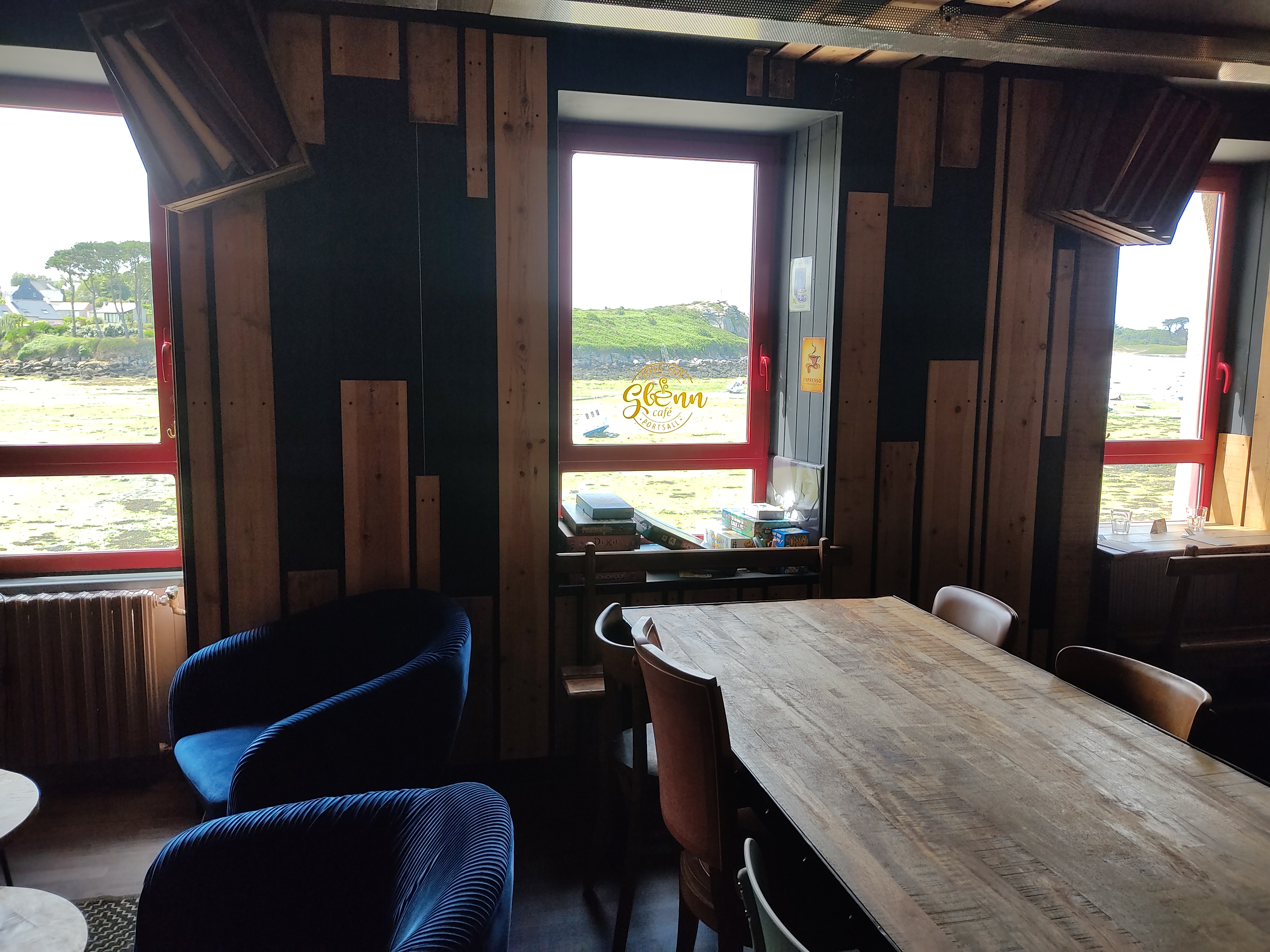 Un petit moment convivial en famille. Pas de stress, on profite de la vue à l'étage sur l' anse de Portsall. Les burgers et fisch and chips sont délicieux et que dire des glaces maisons...