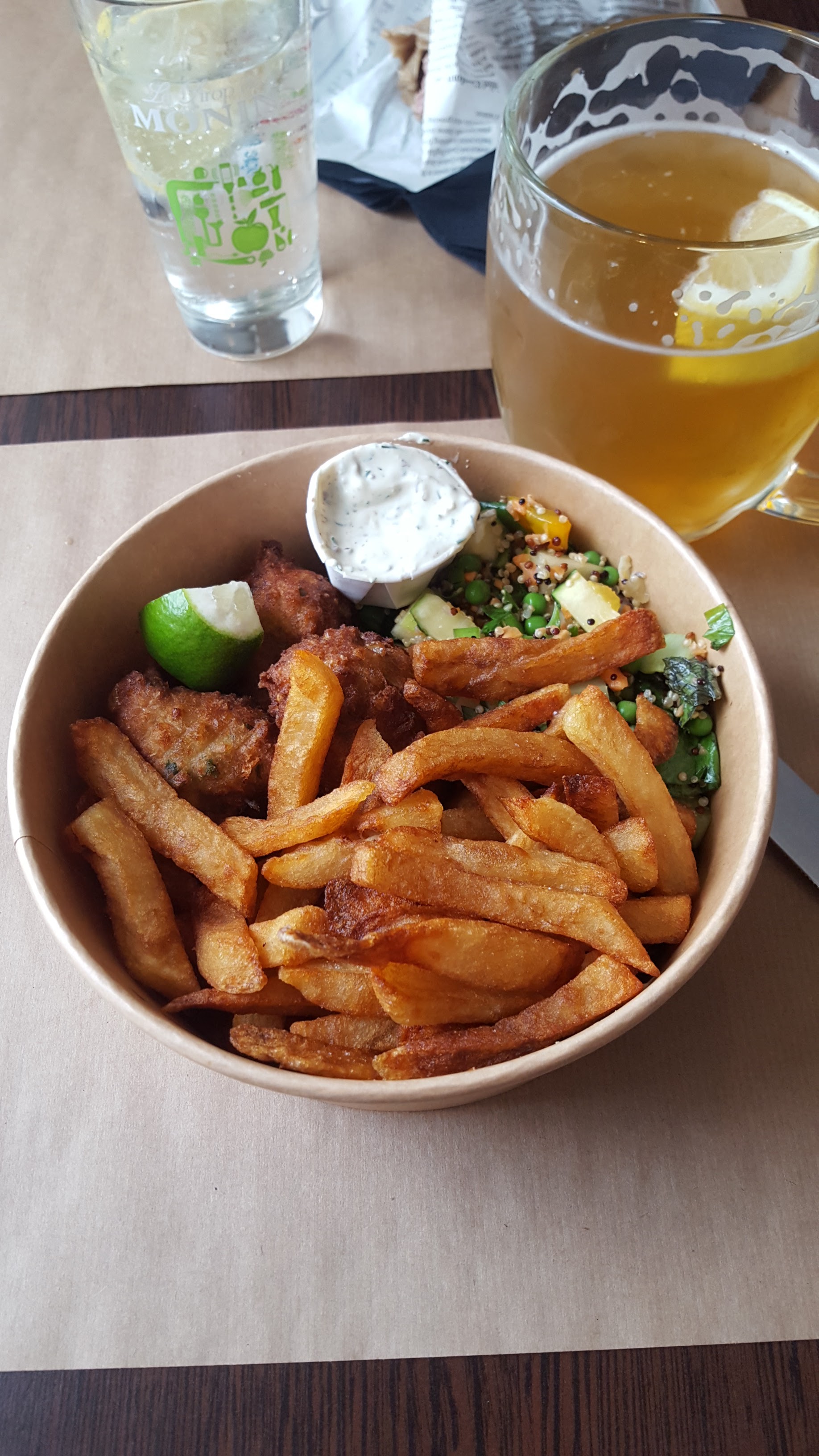 Nous avons dégusté le fish & chips à emporter : un vrai régal ! Qualité, quantité, prix très correct, joli bag de transport. Que du bonheur...