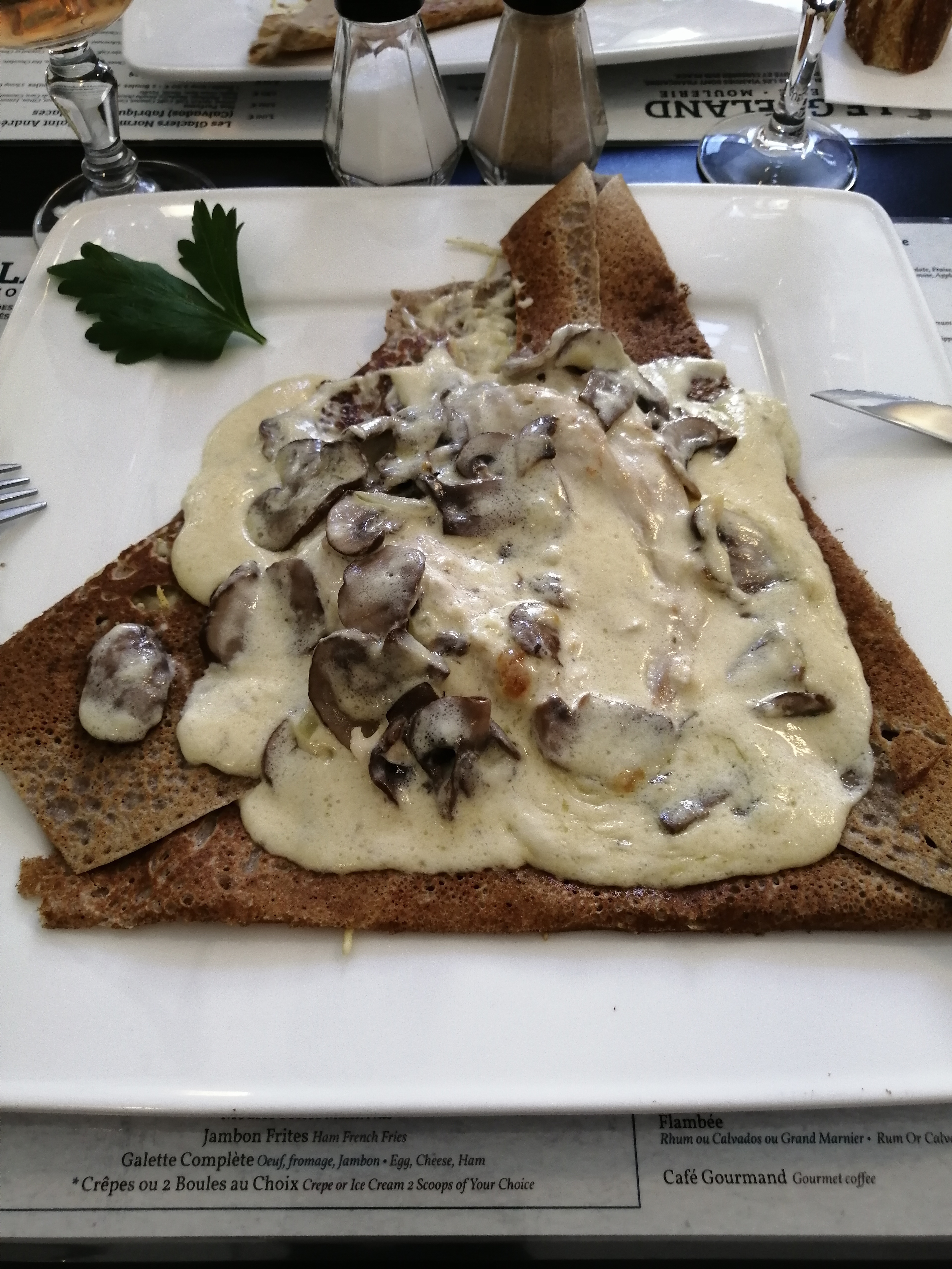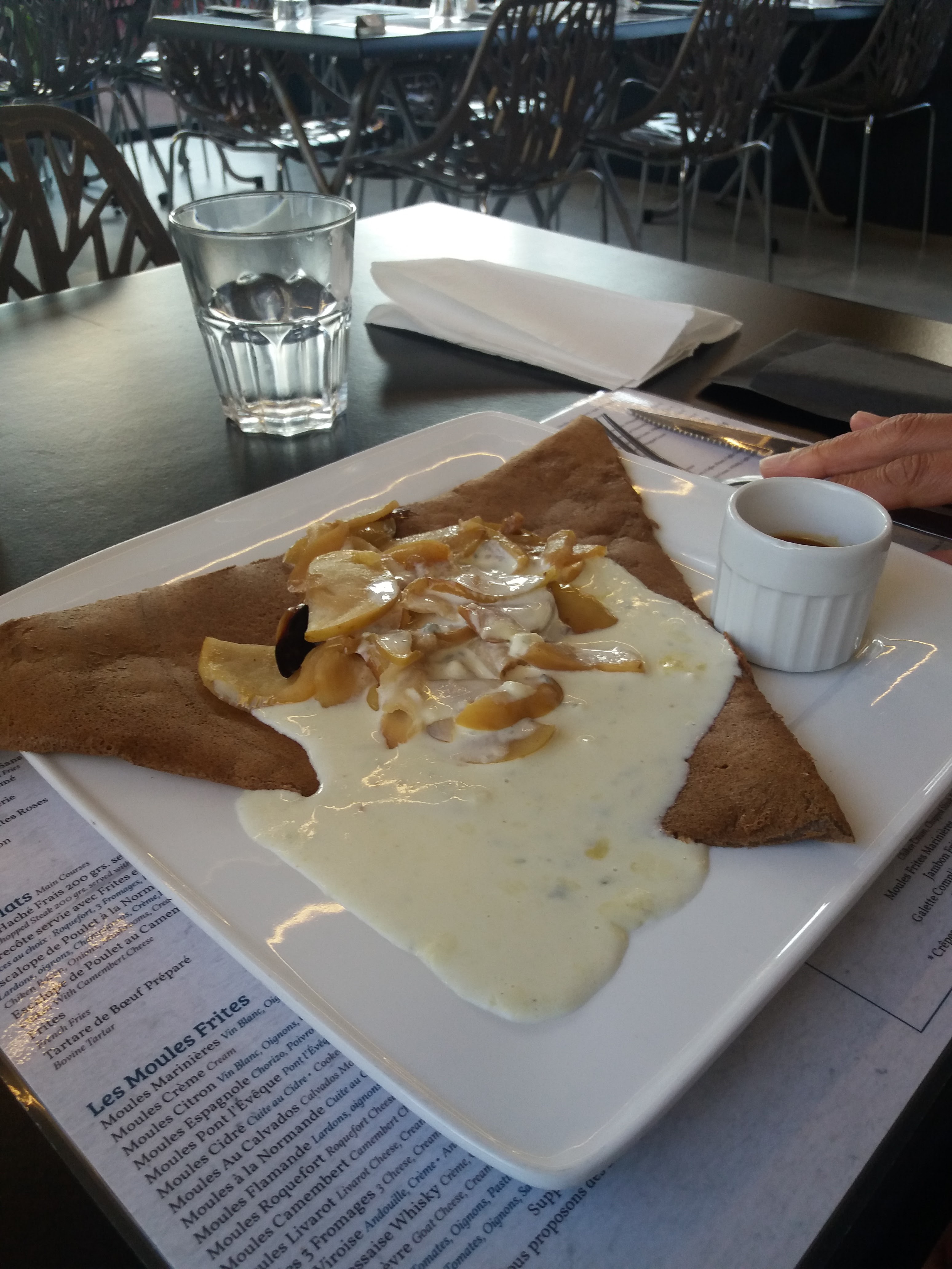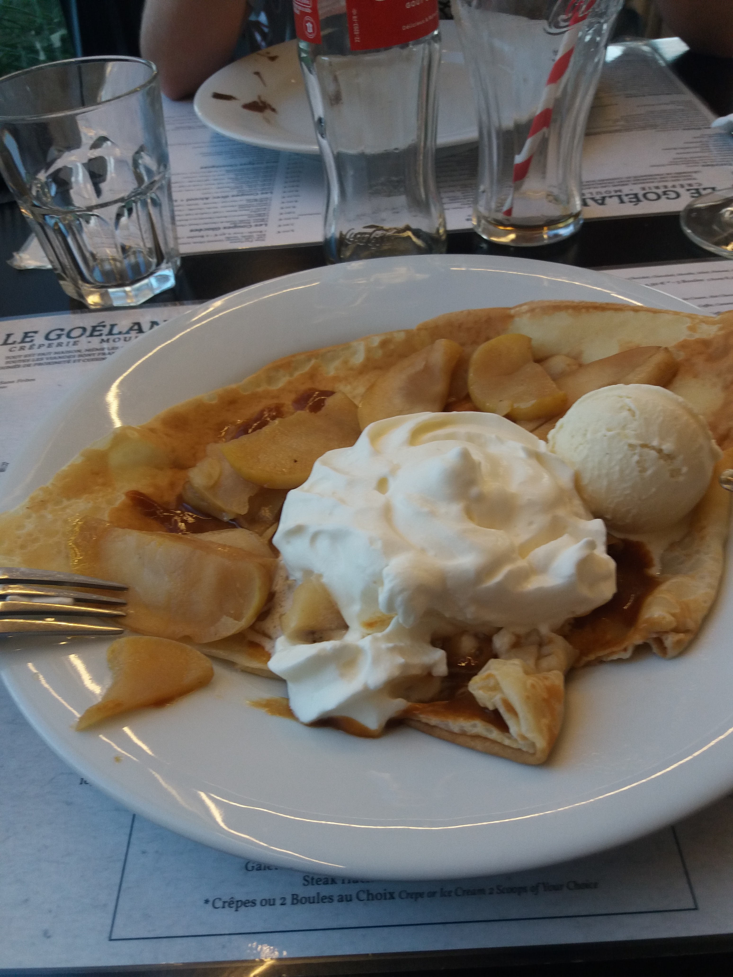 Pris crêpe caennaise sympa, même si des lardons ou de l'andouille en plus aurais été une bonne idée. Dessert café liégeois excellent. Et une crêpe tatin , bof pomme très acide et non caramélisées à améliorer. ... dommage