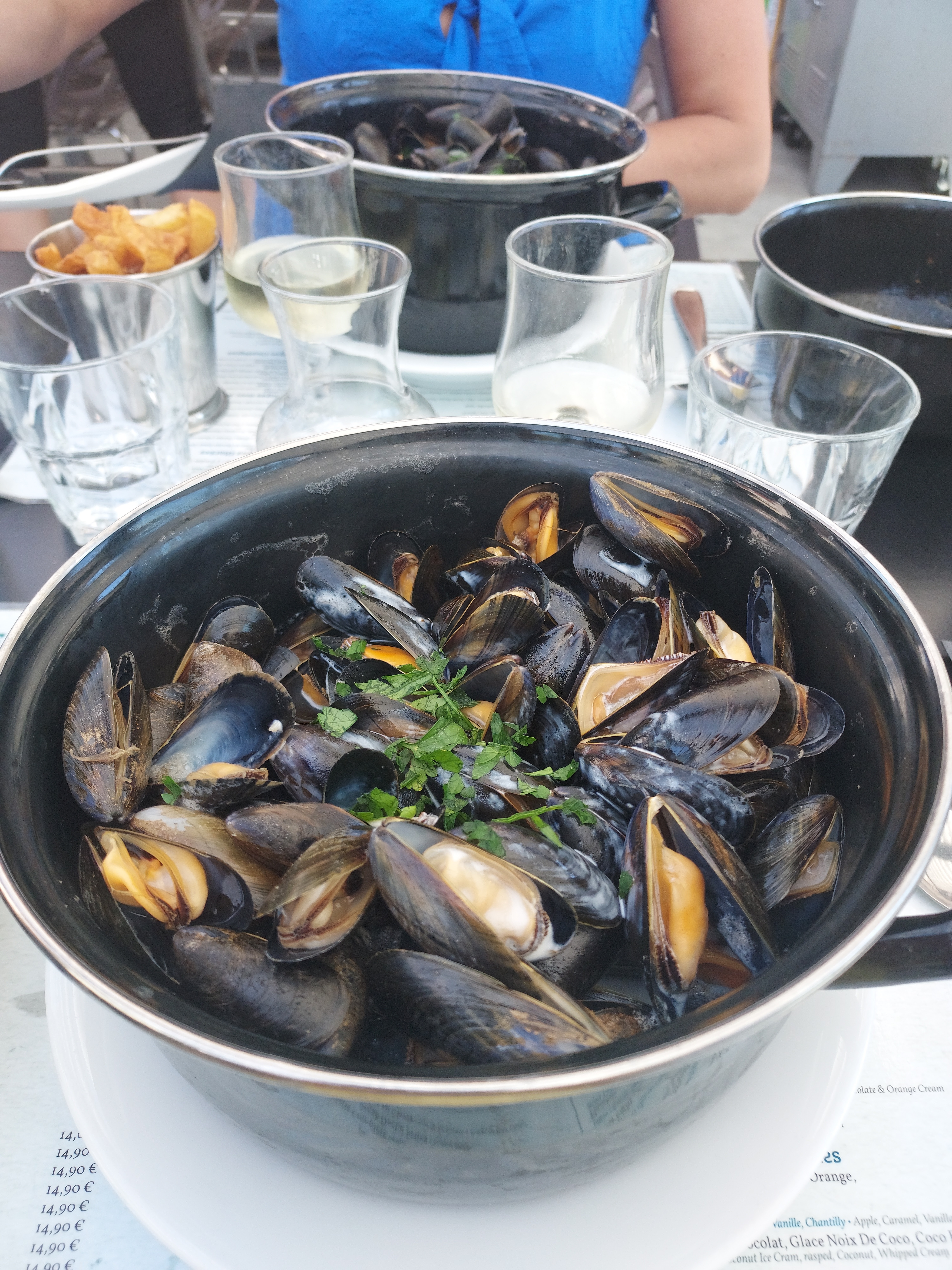 Accueil, et service agréable. Terrasser couverte au soleil. Moules perfectibles, trop cuites, peu de goût.