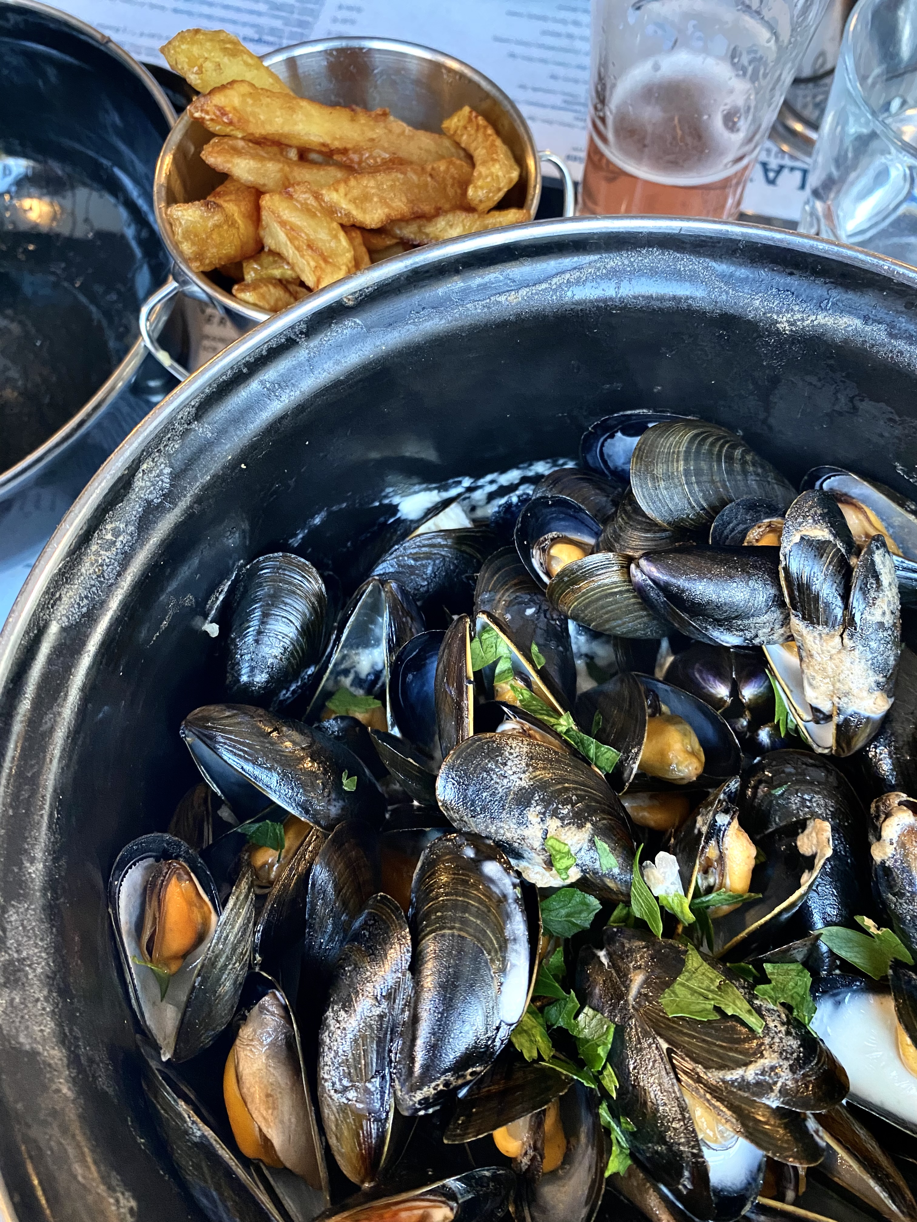 Nous y sommes allés dimanche,sans réservation, grand choix de moules : nous avons pris à l'indienne,aux trois fromages, marinières et façon flamande..rien à dire sur la quantité et les sauces divines... peut-être la taille des moules (petites..) , le ketchup maison délicieux... toutefois portion de frites petites..pour des gourmands comme nous...cadre sympathique et serveuse très avenante.