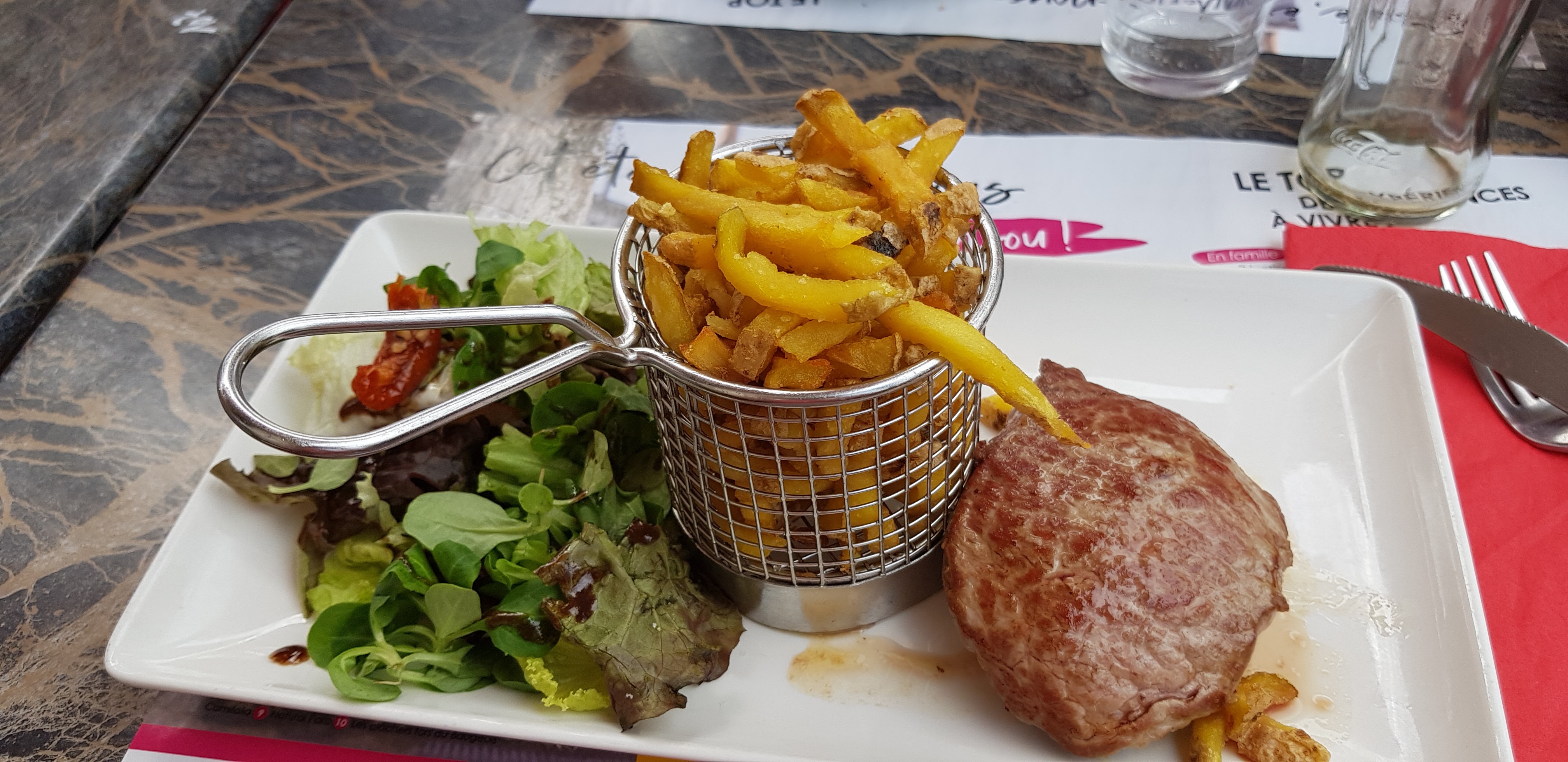 Service très agréable et rapide, malgré l'affluence. Très bon plat du jour (des frites fraîches excellentes !). Merci et à bientôt 😉