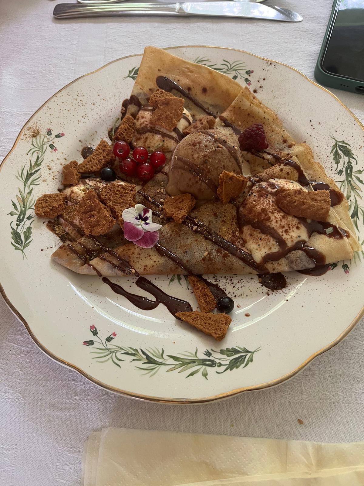 Génial super bien reçu le cadre est hyper agréable la galette exquise. Le sorbet exquis