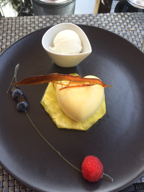 Lieu exceptionnel. Très agréable. Cuisine raffinée. J'y passe tous les étés. Ce soir, Foie gras avec chutney de mangue. Ravioles aux cèpes et truffes exceptionnelles, le tout terminé par un macaron aux framboises (un délice) servi par un jeune homme et une serveuse rousse très sympathique