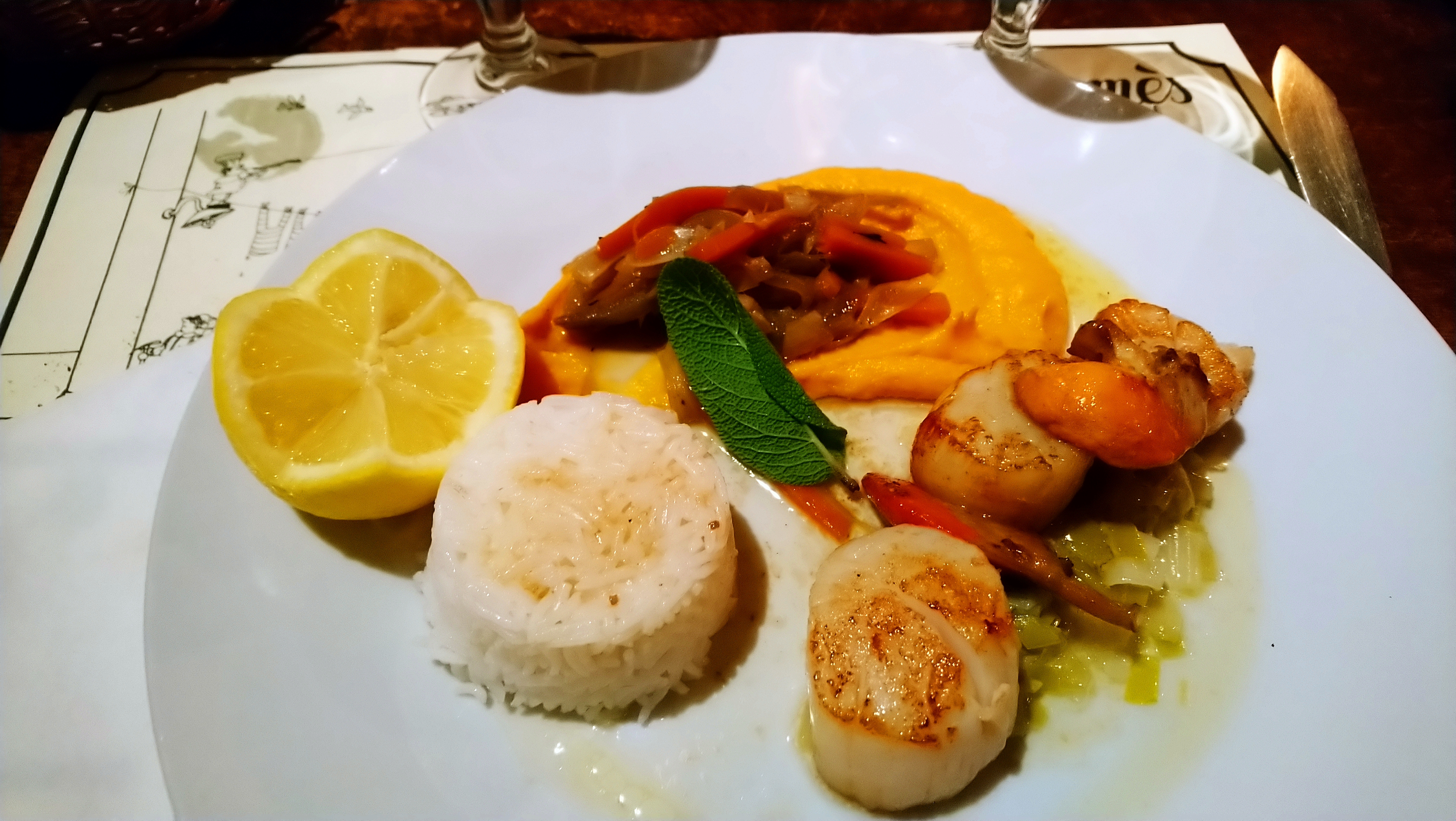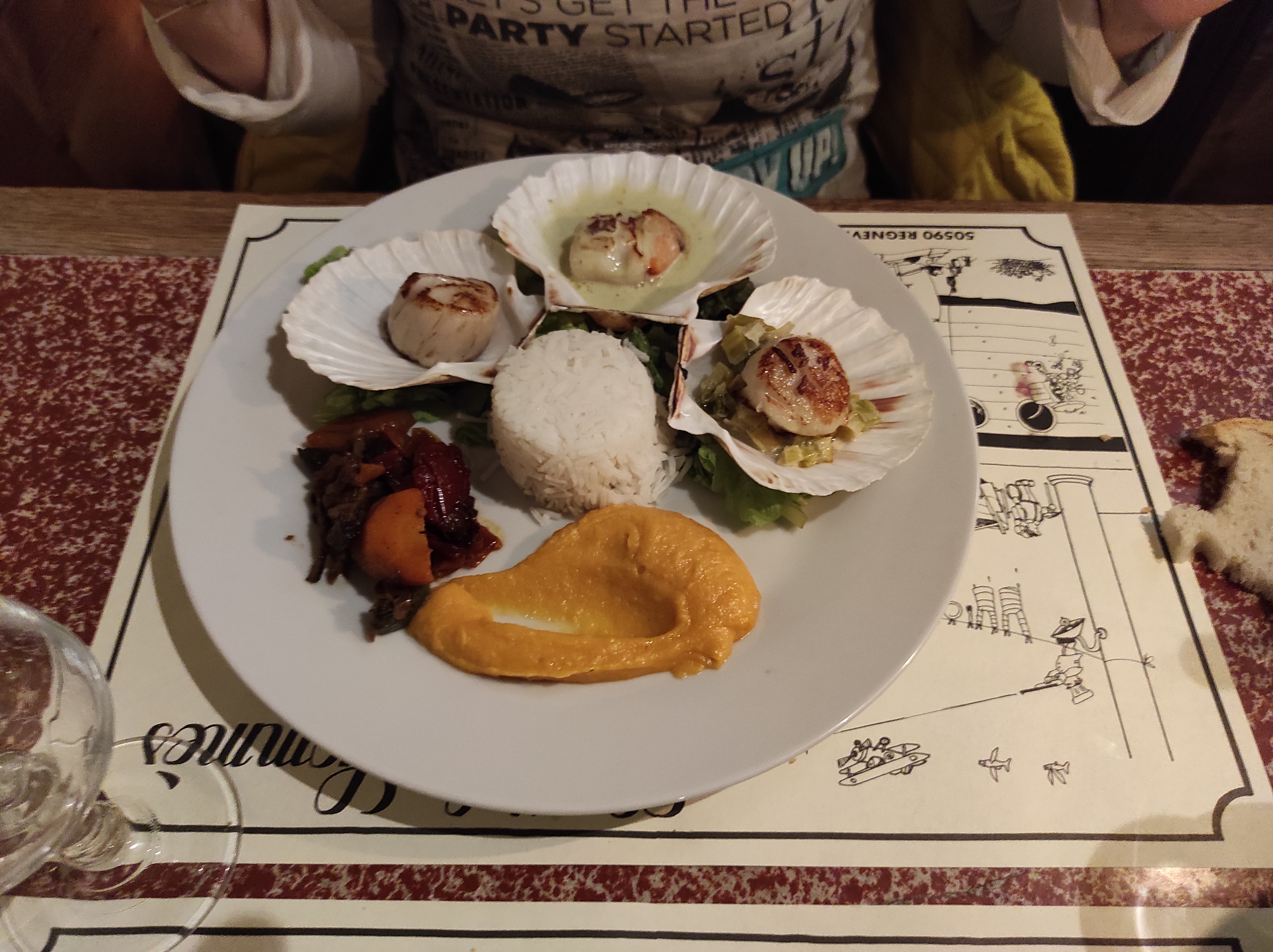 Décevant ! Rapport qualité prix pas au niveau du tout ! Amandes farcies sèches, gratiné de saumon baignait dans l’huile, andouillette 5A présentée tranchée avec des pommes de terre à peine cuite.
