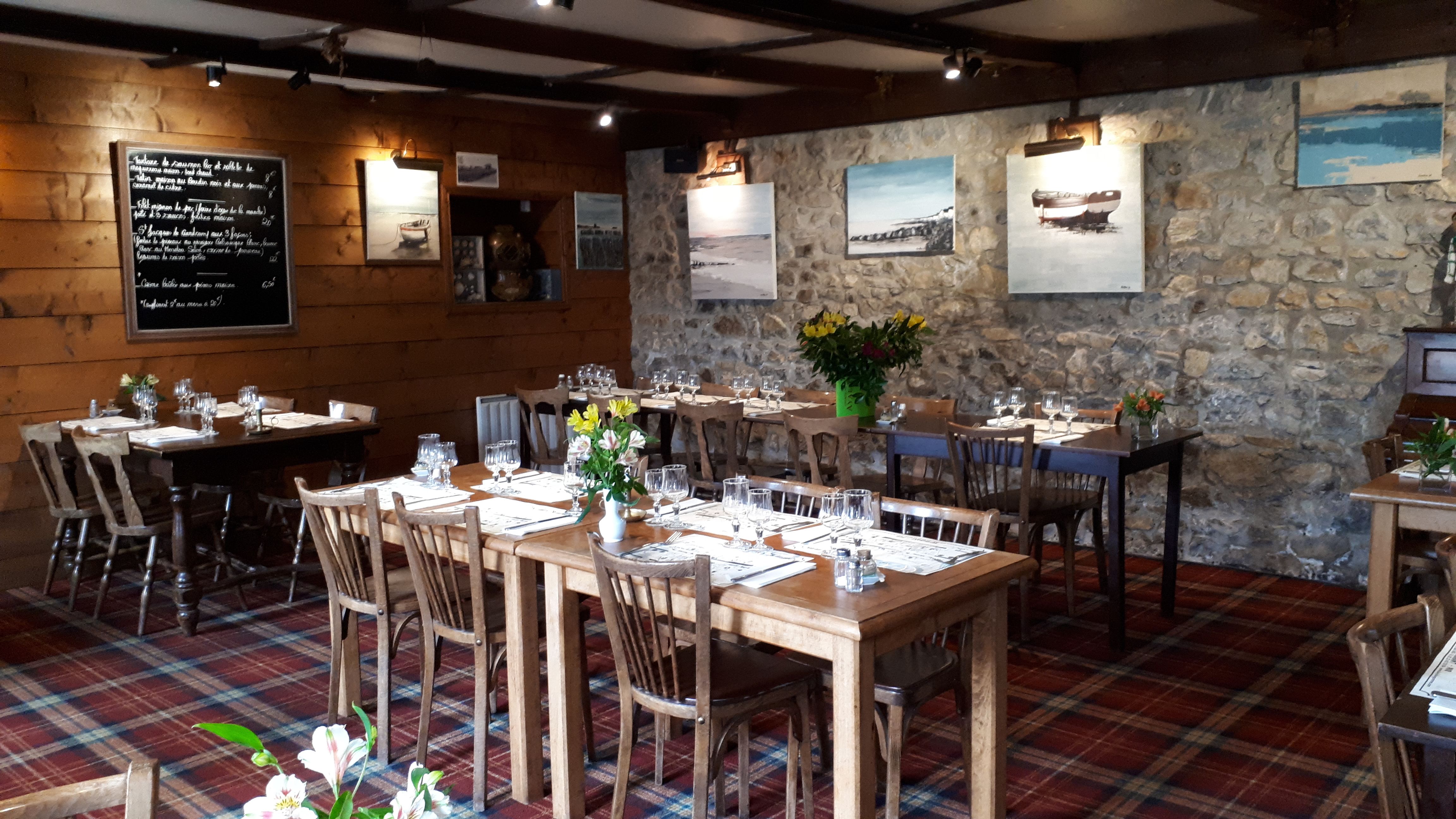 Restaurant dans un charmant petit village au bord de l'eau. Dîner pris sur la terrasse très agréable et un menu du jour proposé qui était bien cuisiné à base de produits locaux (aile de raie ou agneau de pré salé) Serveur aux petits soins !!
