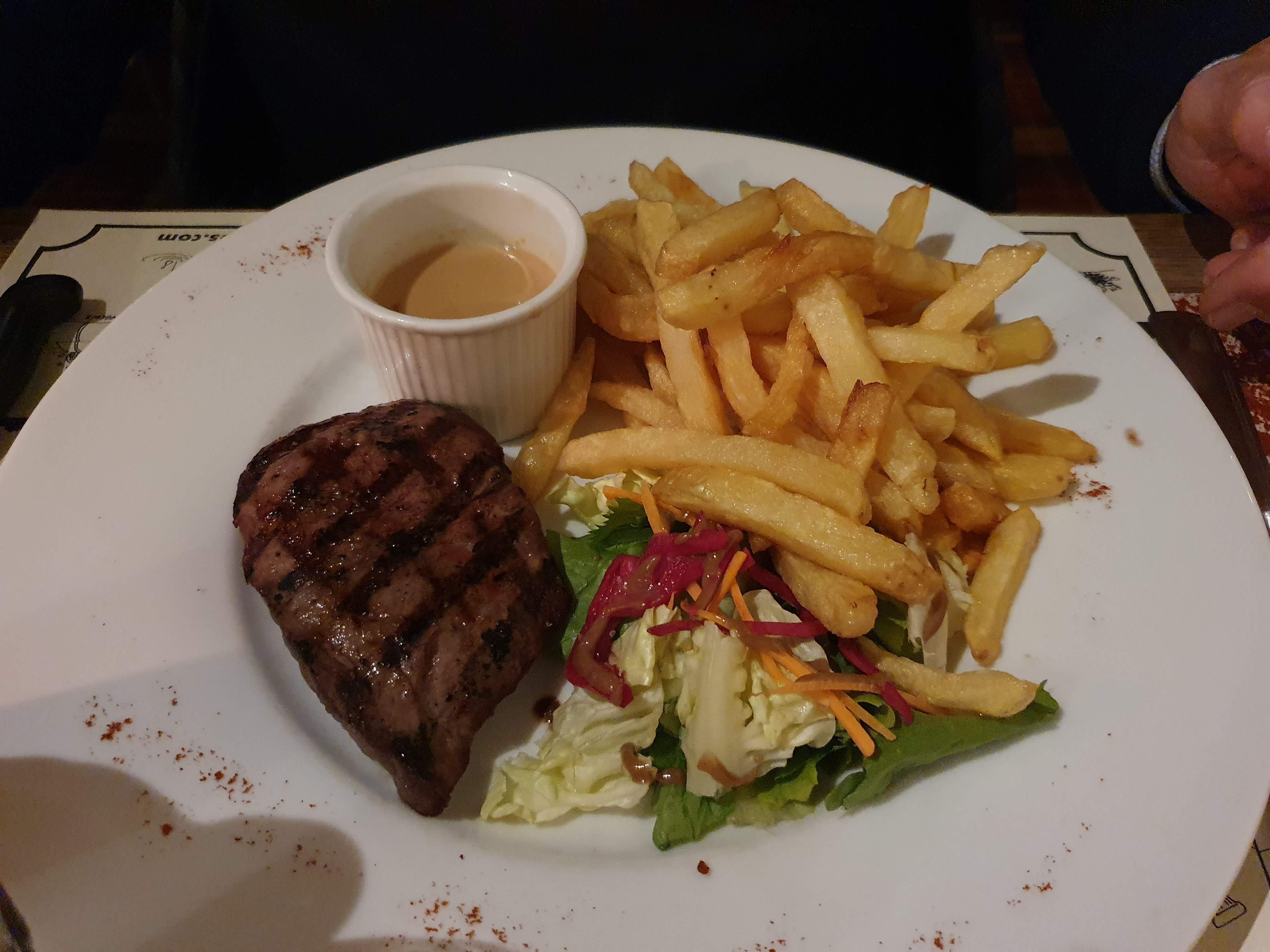 De passage en vacances,une halte dans ce restaurant au decor très sympa.Une formule a 15 euros en semaine pour deguster un bon plat (frites excellentes)un dessert et un café 😀Je recommande et il y a un bon acceuil ,ambiance pub...