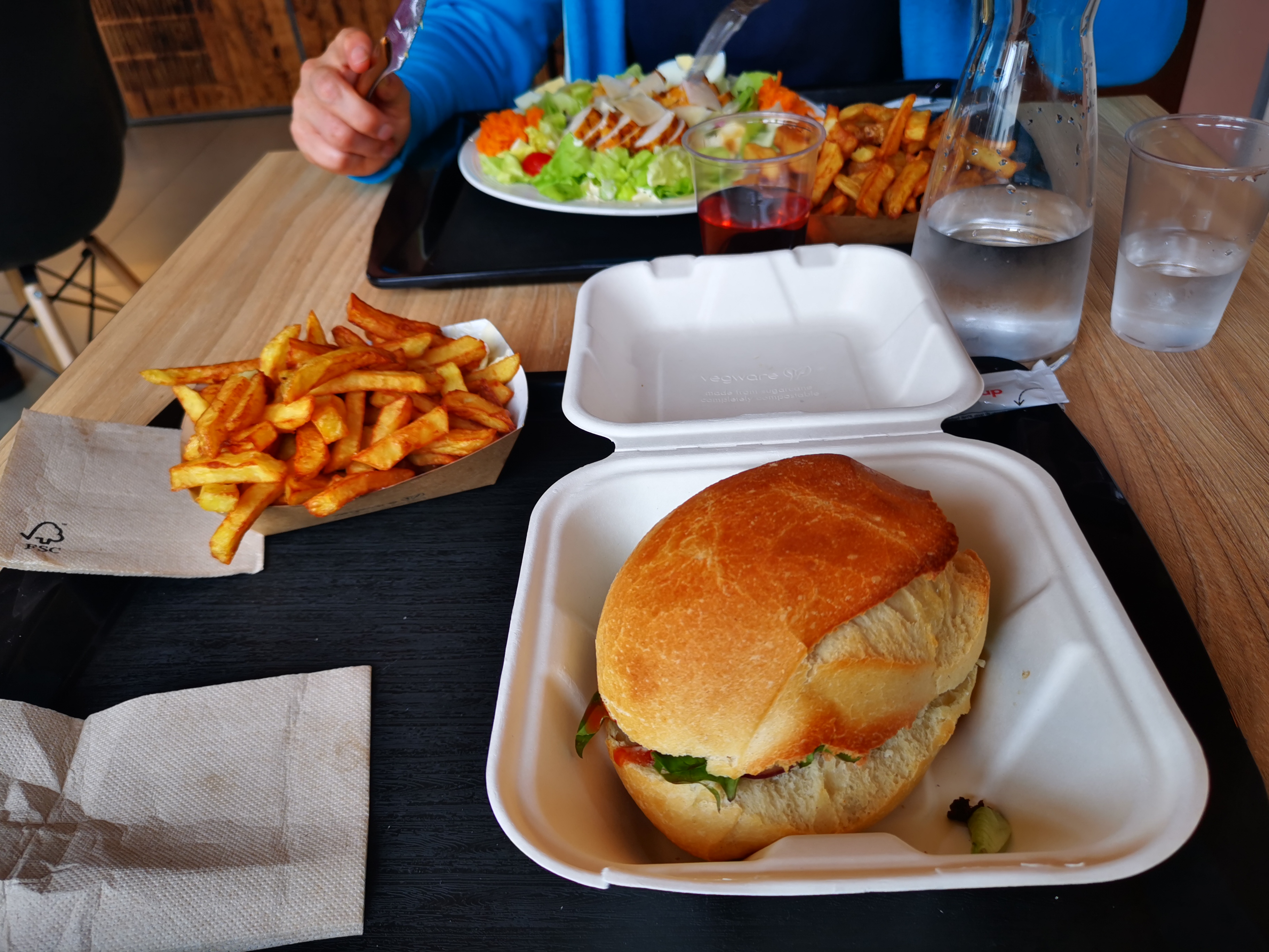 Posté le 02/09/2020 à 14:23"Restauration rapide avec des produits locaux de qualité servis dans des contenants recyclables. On y mange très bien, c'est bon et copieux, rien avoir avec les fast-food traditionnel. Le burger à la tome est exellent ! Tout ça ce ressent sur l'addition . D'où une étoile en moins. La qualité à un prix , mais cela ne doit être excessif. Je recommande tout de même."