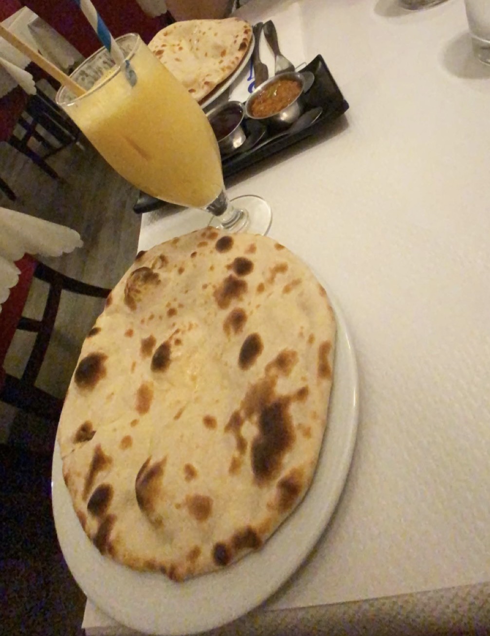 J'ai pris en entrée des morceaux d agneau tikka , sec et dur à la coupe. Mon butter chicken était très sucré orange comme si c'était une sauce à base de carotte. Donc assez déçue car c'est un plat que je connais très bien ailleurs. Serveur un peu fatiguée. Le riz et cheese nan correct.