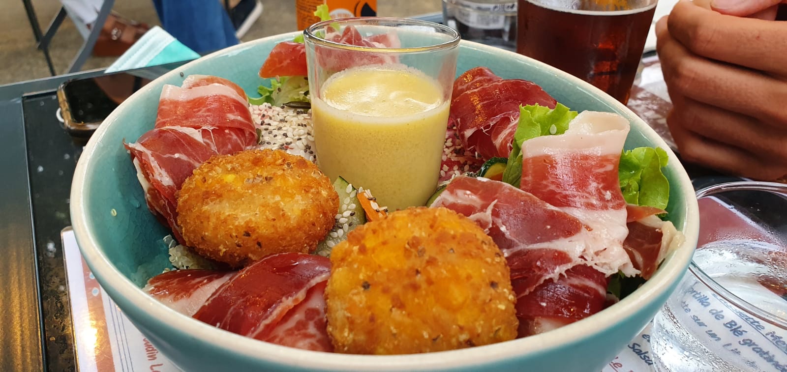 cuisine originale et délicieuse, accueil chaleureux sur une jolie petite place, ambiance agréable, je le recommande fortement, un petit moment de détente que l'on s'accorde volontiers un soir d'été !