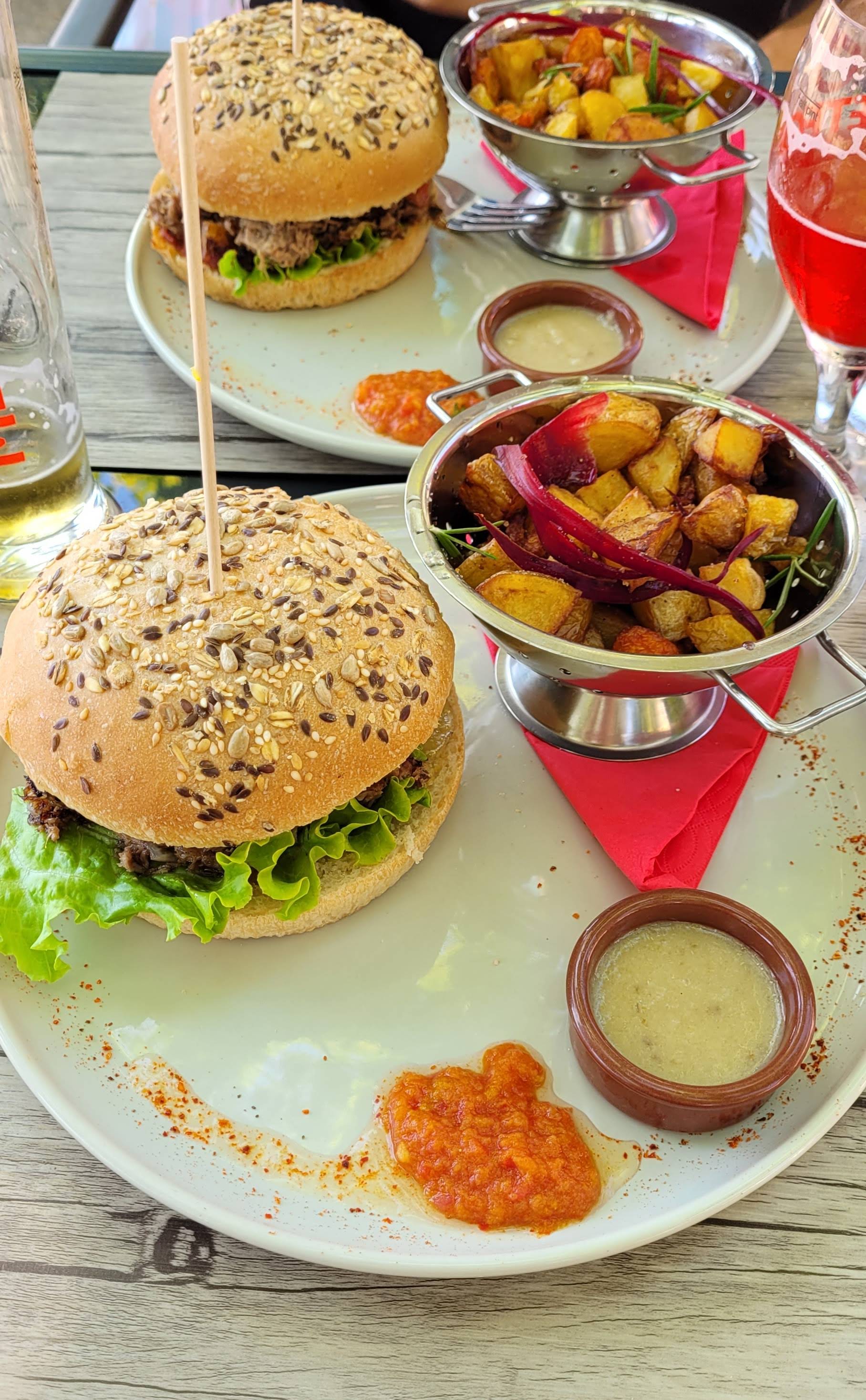Un restaurant esprit guinguette sur cette place entourée de platanes ou règne un esprit de vacances. Accueil toujours aussi sympathique. Quel régal les fameux burgers du terroir et nous avons été chanceux nous avons pu les goûter. Nous reviendrons vous voir avec plaisir et courage pour la saison qui s'annonce. Joëlle & Daniel