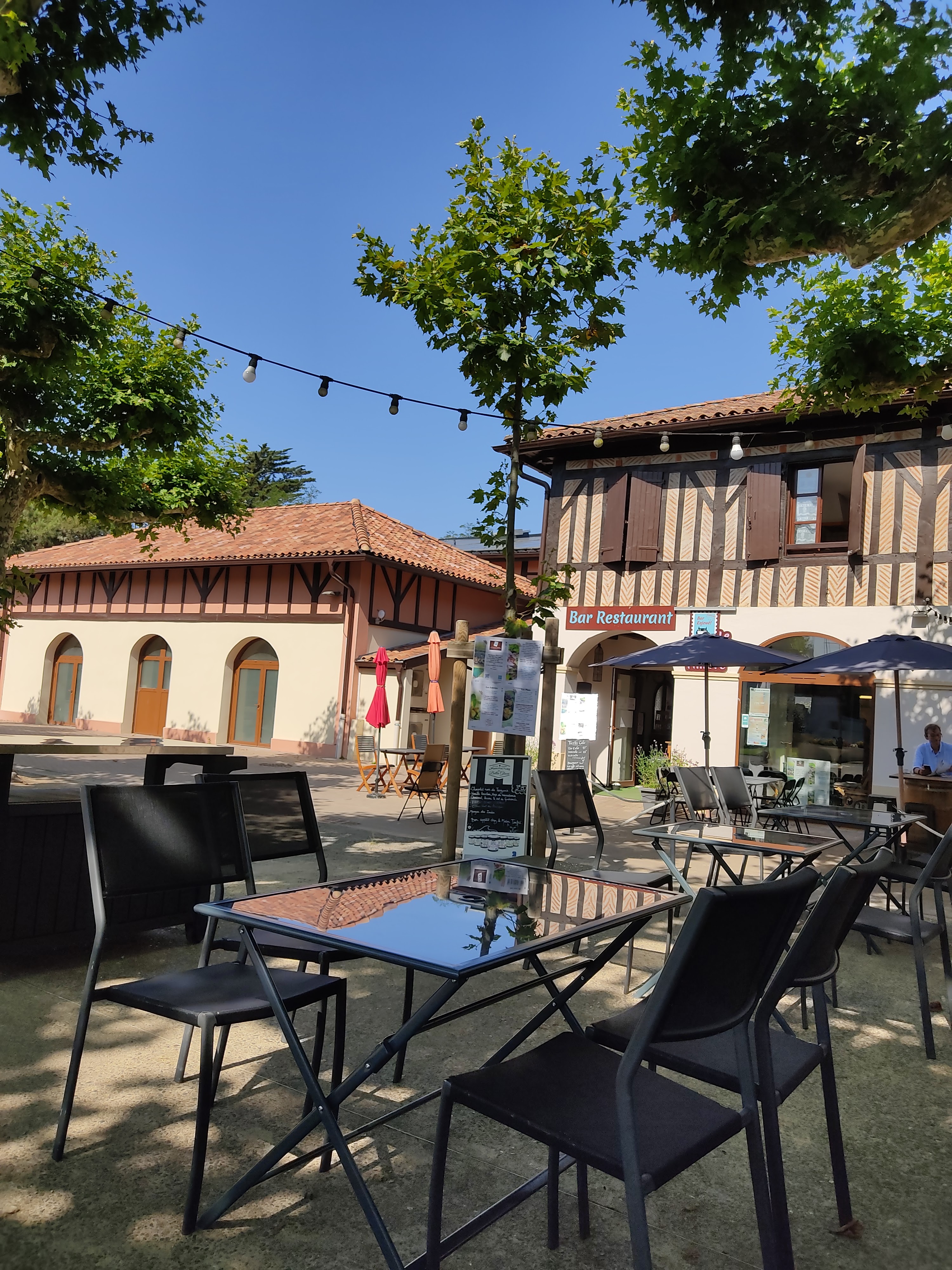 Sur la place du village de moliets et maa sous des guirlandes électriques colorées loiiin de l'agitation de la plage centrale... Cuisine au top (tacos chichi accras encornets'...) cocktails à tomber service souriant et prix plus que corrects! Merci