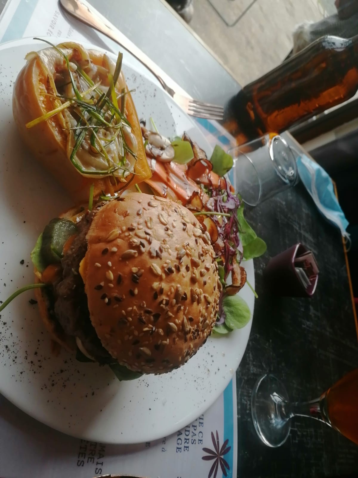 Très bon moment, petite carte et très bon repas! Le burger du terroir et le camembert rôti, une tuerie 😍 pas de mot tellement c'est bon !