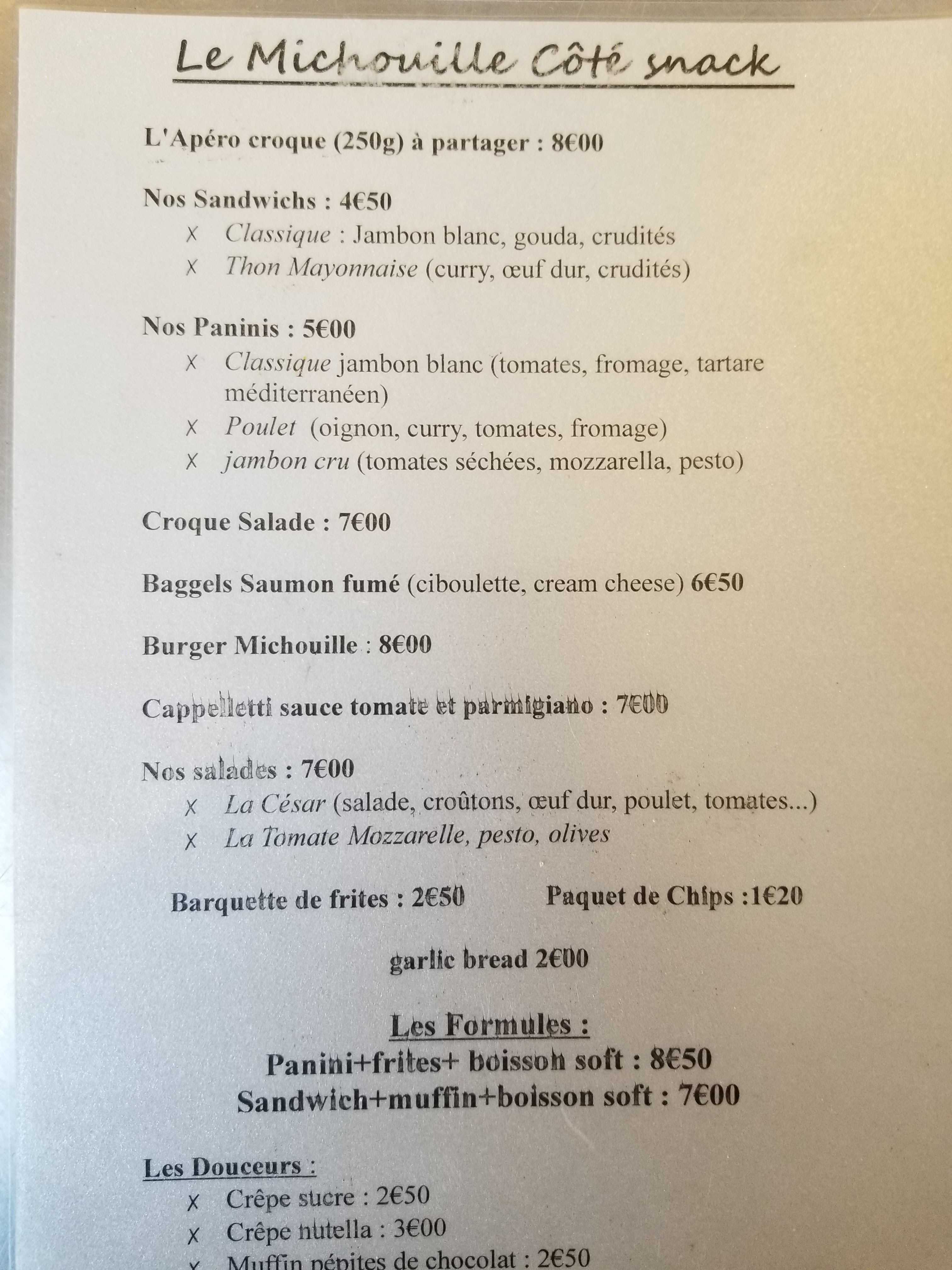 Très bien ce snack. Les prix sont raisonnables et le personnel sympathique.