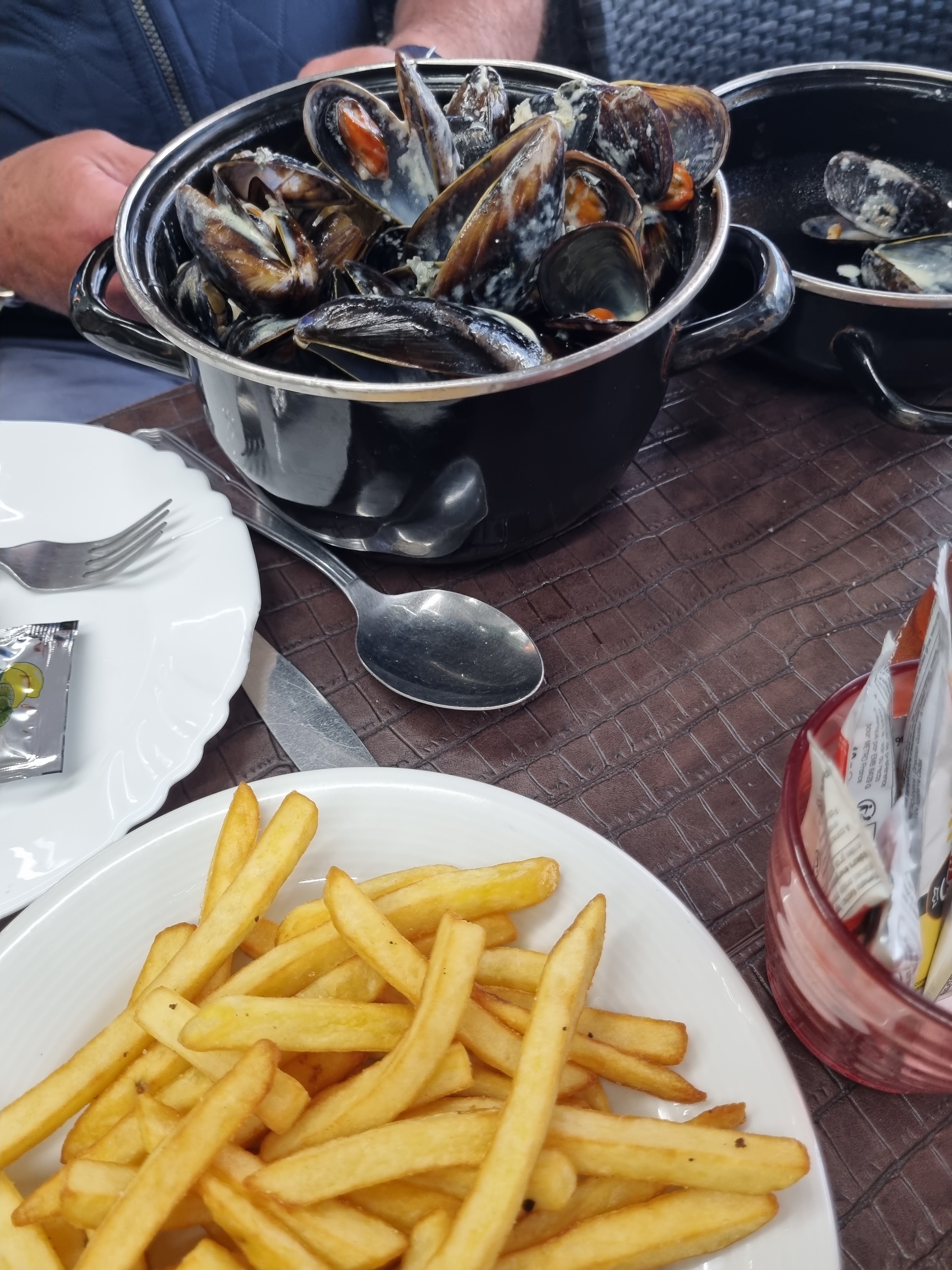 Déçu, je suis ressorti en ayant très faim, peu de moules, 1 sur 3 était bonne. Très fade. on ne venais pas nous voir pour demander si on avais besoin d’autres choses (en l’occurrence de l’eau). Aucunes proposition de sauces pour elles accompagner les frites. Un cheveux a été retrouvé dans un plat de moules. Pas de charlottes en cuisine. La glace (pistache) n’avais pas bon goût. Des regards un peu méprisant. L’impression de « déranger ». Quand on nous ramène une bouteille d’eau, on dit merci, aucun retour. Déçu, peu professionnel.