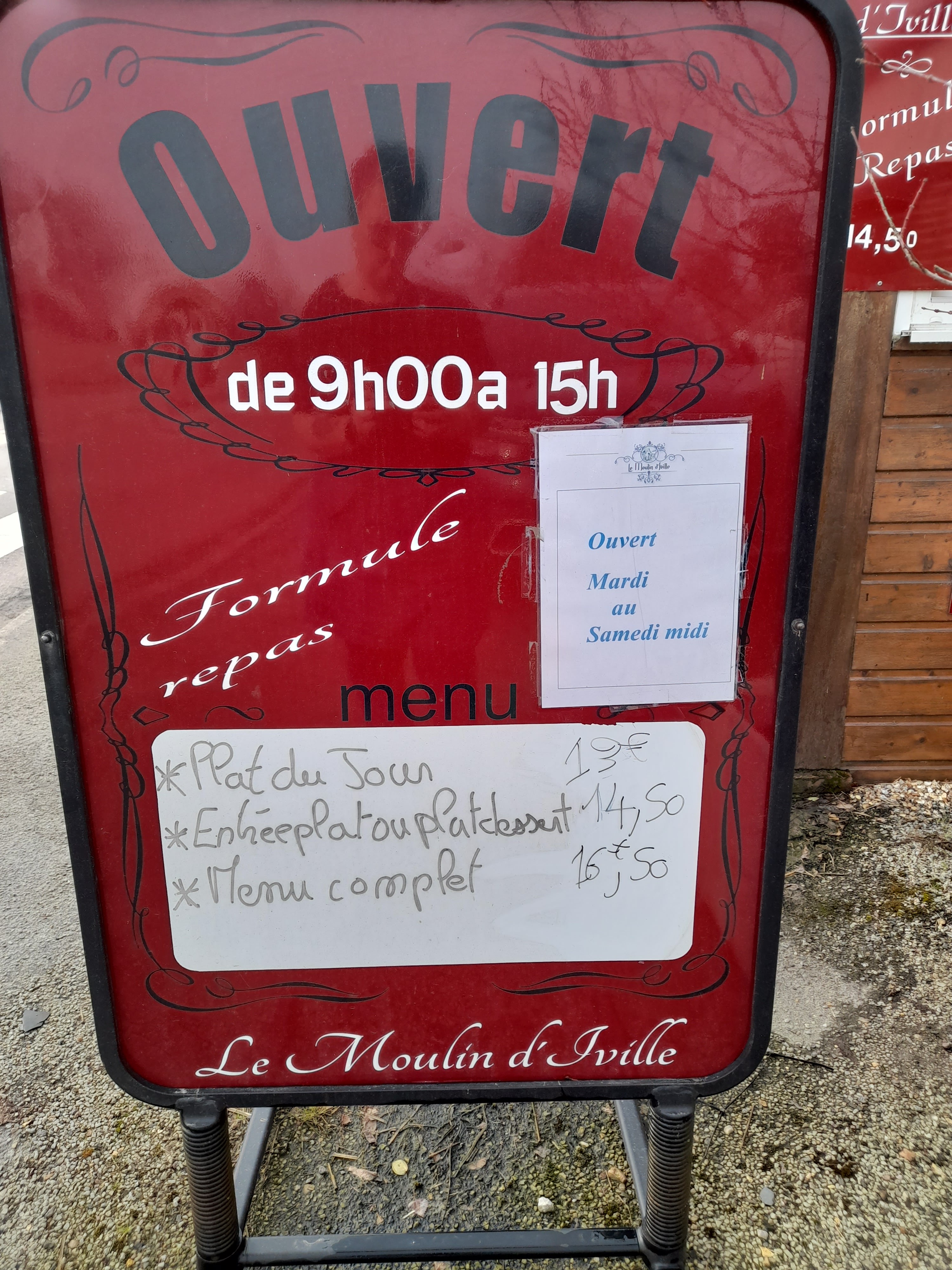 Posté le 10/11/2024 à 00:58"Depuis le temps qu’on nous parlait en bien du « Moulin d’Iville », nous nous sommes décidés mon amie et moi à nous y rendre. Nous avons eu raison de faire une réservation car ce Vendredi, le restaurant a vite été complet. Pour autant l’ambiance a été sereine, signe que quand les gens se régalent ils sont beaucoup moins bavards. Malgré l’affluence le service est très bien géré par la « Patronne » qui respecte très bien votre temps de dégustation avant de vous présenter votre plat principal. Pas possible de vous recommander un plat particulier car j’ai eu du mal à faire mon choix et mon amie aussi. Ce restaurant propose de la « cuisine familiale » mais meilleure qu’à la maison 😋. À savoir que dans le menu sont proposés certains jours une spécialité culinaire particulière que je vous invite à découvrir sur le site du « Moulin d’Iville ». Pour terminer, je dirais comme « Terminator » : « Je reviendrai… » ne serait-ce que pour la « tête de veau » 😋😋😋."