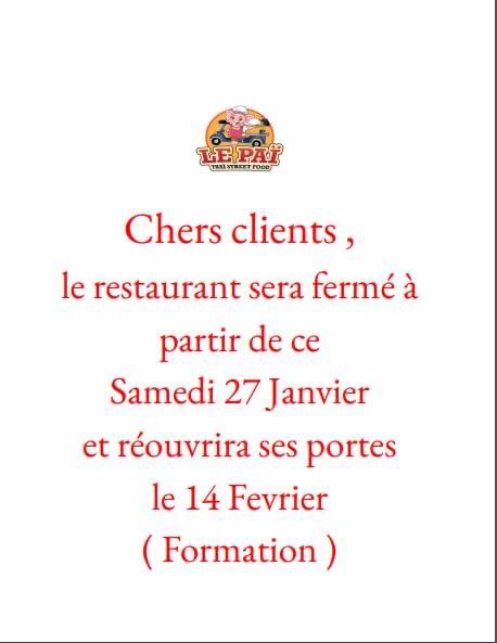 J'ai pris récemment à emporter, j'ai découvert les pad thaï, c'était super bon! Je vous souhaite beaucoup de succès!