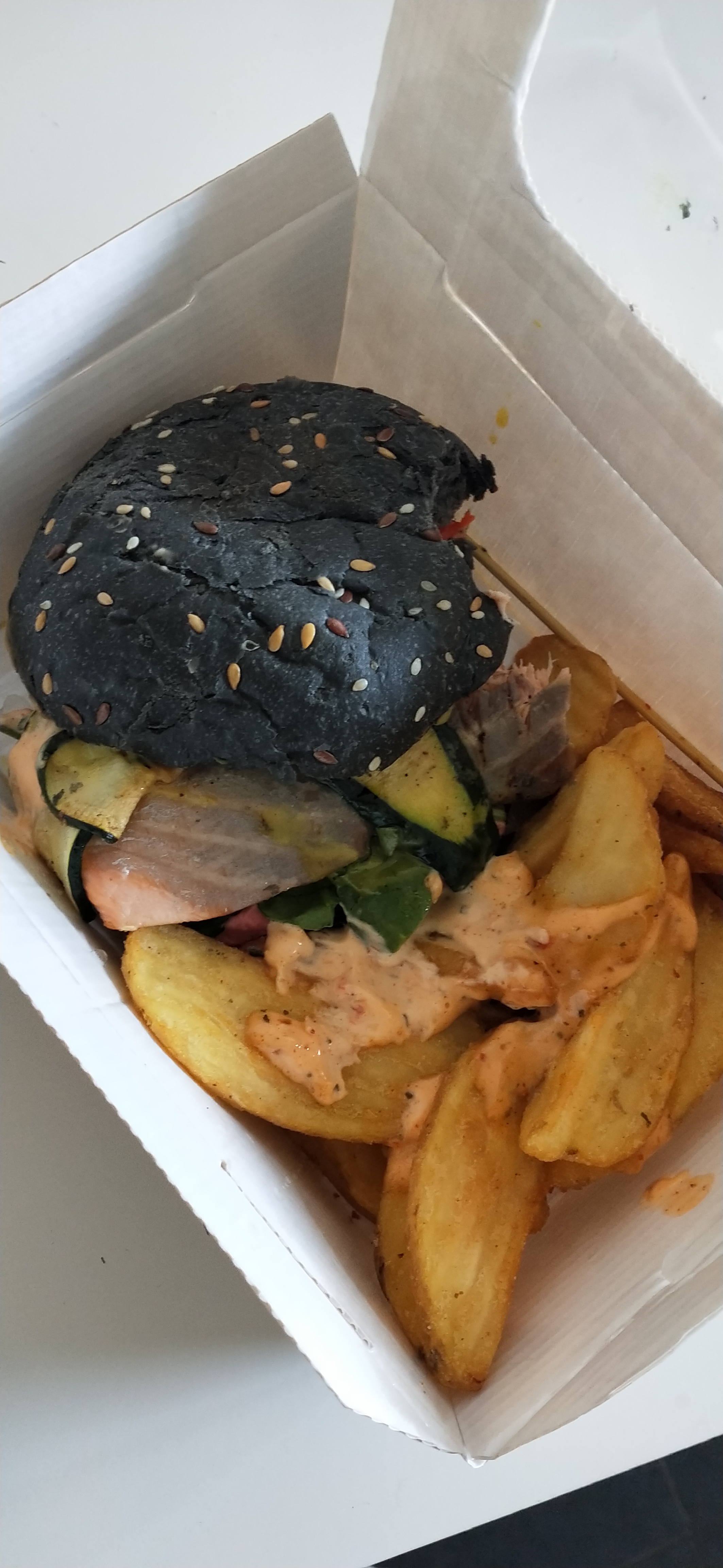 Une très bonne adresse On a pris deux Burgers un végétarien et un saumon , ils étaient trop bons. Si vous êtes de passage allez les goûter ! Je recommande !