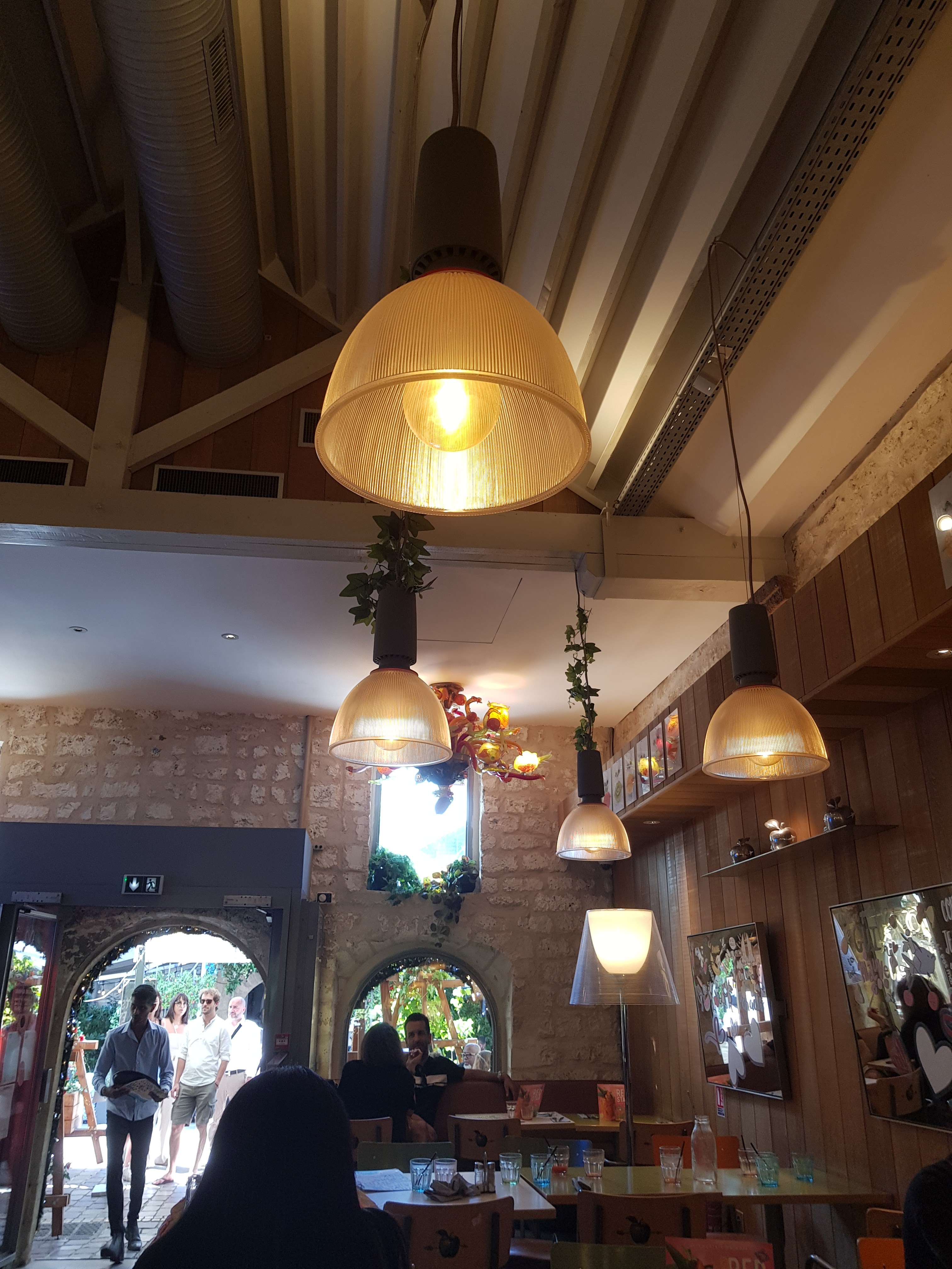 J’aime beaucoup Bercy Village avec son lot de boutiques et de restaurants. Nous nous sommes donc naturellement arrêtés au Paradis du Fruit pour nous restaurer pendant cette sortie. La salle intérieure est plutôt bien aménagée. La terrasse avait l’air sympa également mais très certainement bruyante avec tout le flux de passants. Le personnel est accueillant. Par contre, petit bémol sur les plats qui étaient moins réussis que dans d’autres restaurants de l’enseigne où j’avais été.