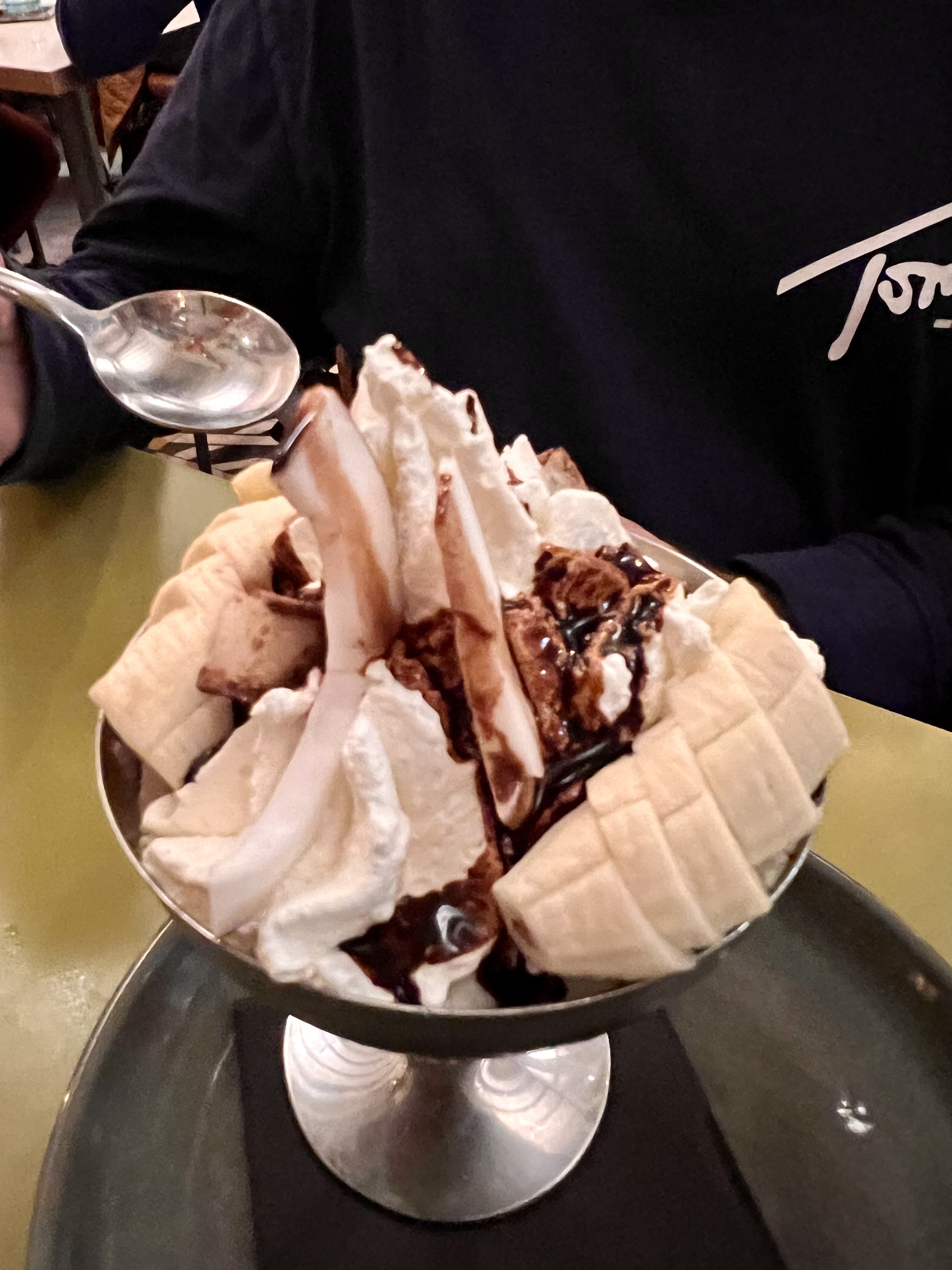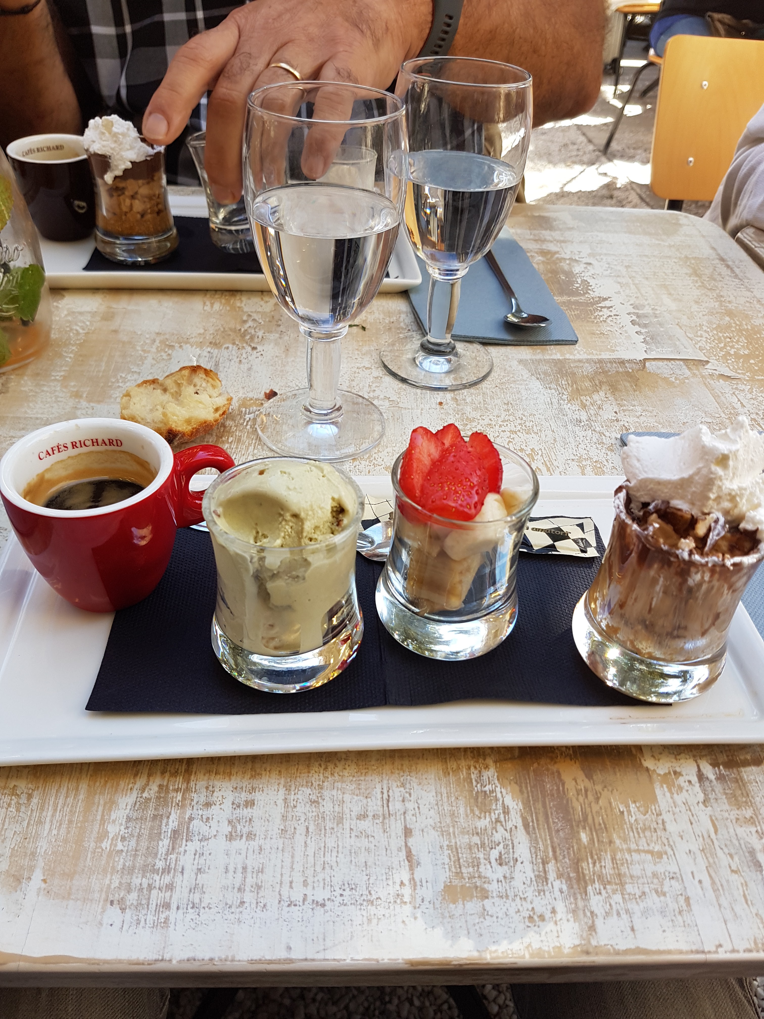 Agréable pause familiale pour déguster d'excellentes glaces et cocktails aux fruits frais après notre séance de cinéma. Le cadre est sympatique, les serveurs souriants et le service efficace.