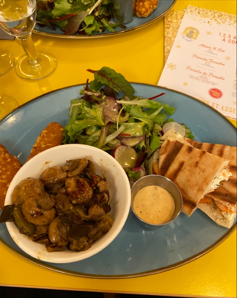 Lieu très agréable, saveurs au rendez-vous ! Une belle surprise du côté de Bercy Village Nous avons essayé le menu Adam et Ève qui propose d’associer deux saveurs et un accompagnement. Plein de bonnes choses, très bien présenté sur les assiettes. L’endroit est chaleureux et le personnel l’est tout autant. Merci pour ce super moment pour le déjeuner !