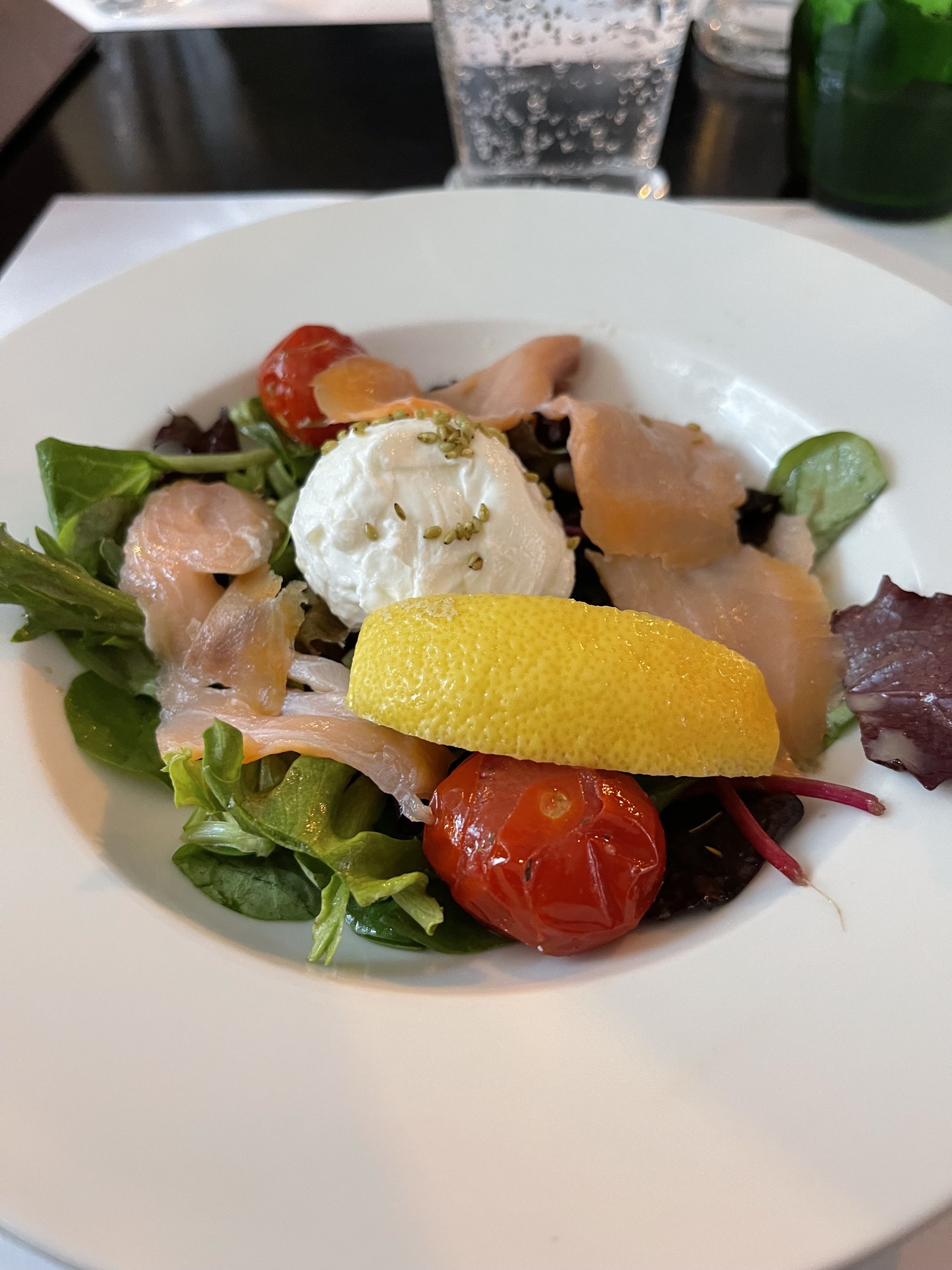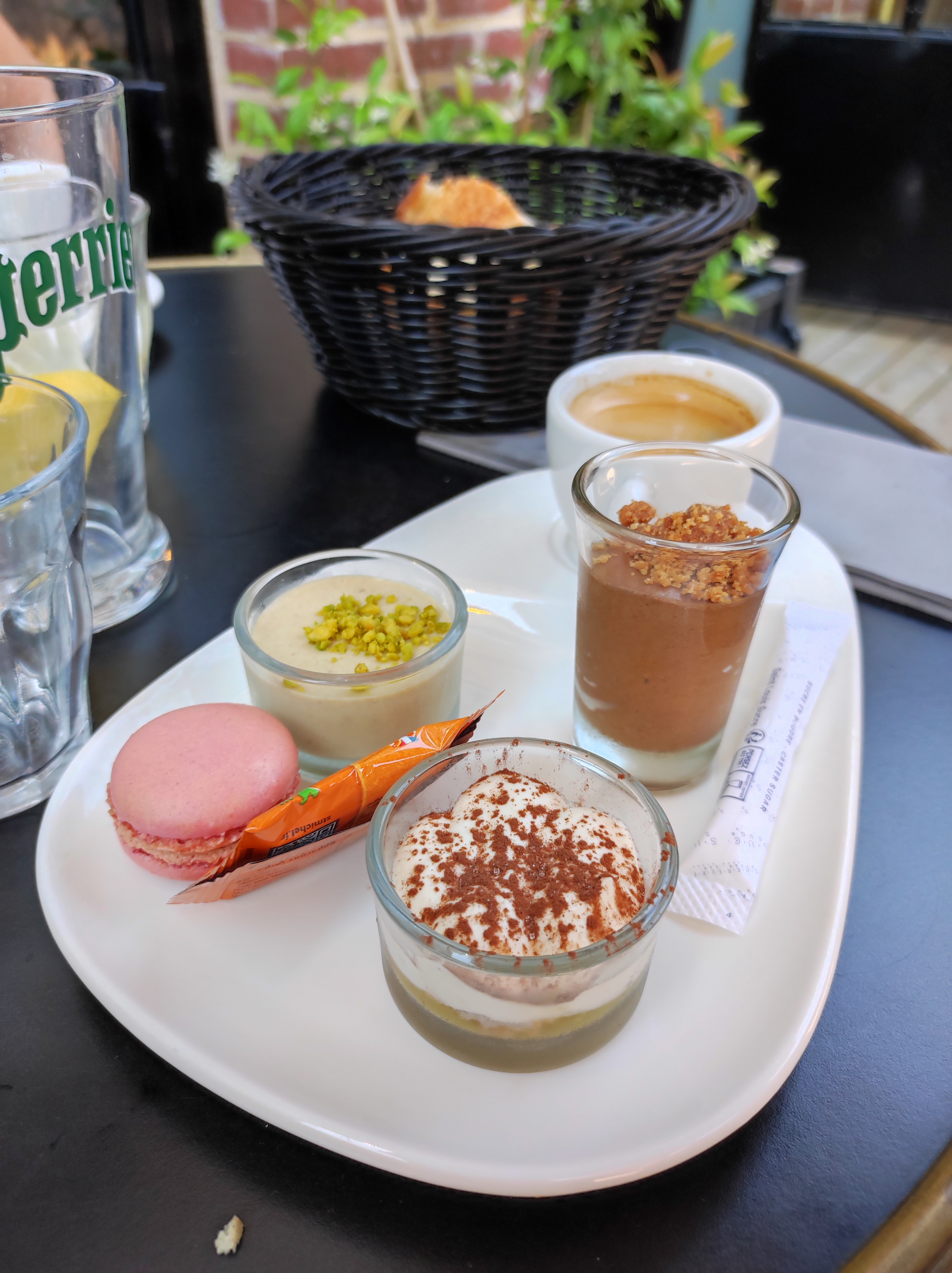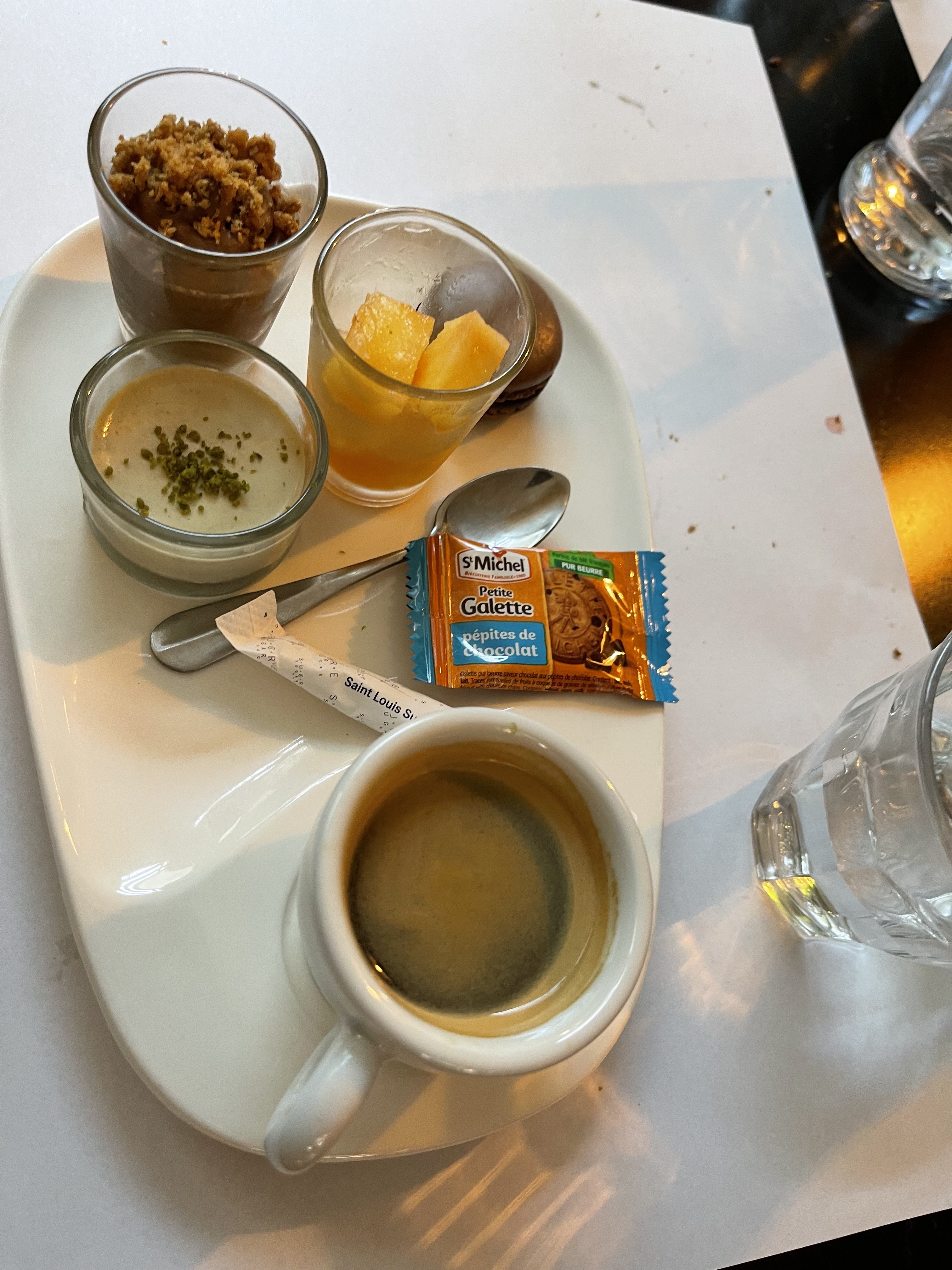 La salade de chèvre est délicieuse, la quantité est parfaite en revanche le café gourmand laisse a désirer.