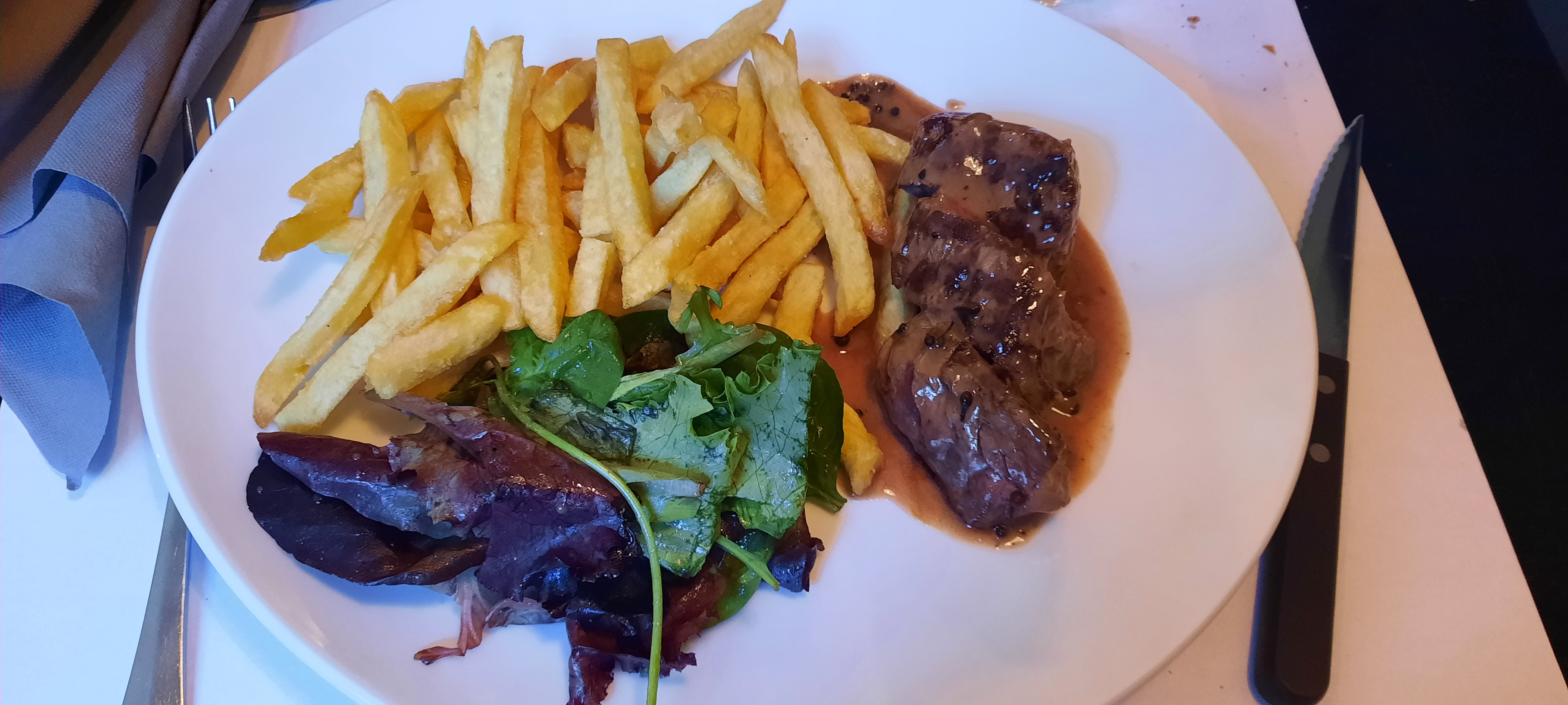 Très mauvais service. Clients hostiles et ignorants. Le pire que nous ayons eu ces vacances/région. Je ne sais pas si c’est parce qu’il y avait trop de monde (alors ils auraient pu le dire) ou parce que nous étions étrangers (même si nous parlons français). La nourriture était plutôt bonne, même si les frites étaient cuites si sombres qu'elles auraient rendu furieux tous les spécialistes de la prévention du cancer du côlon.