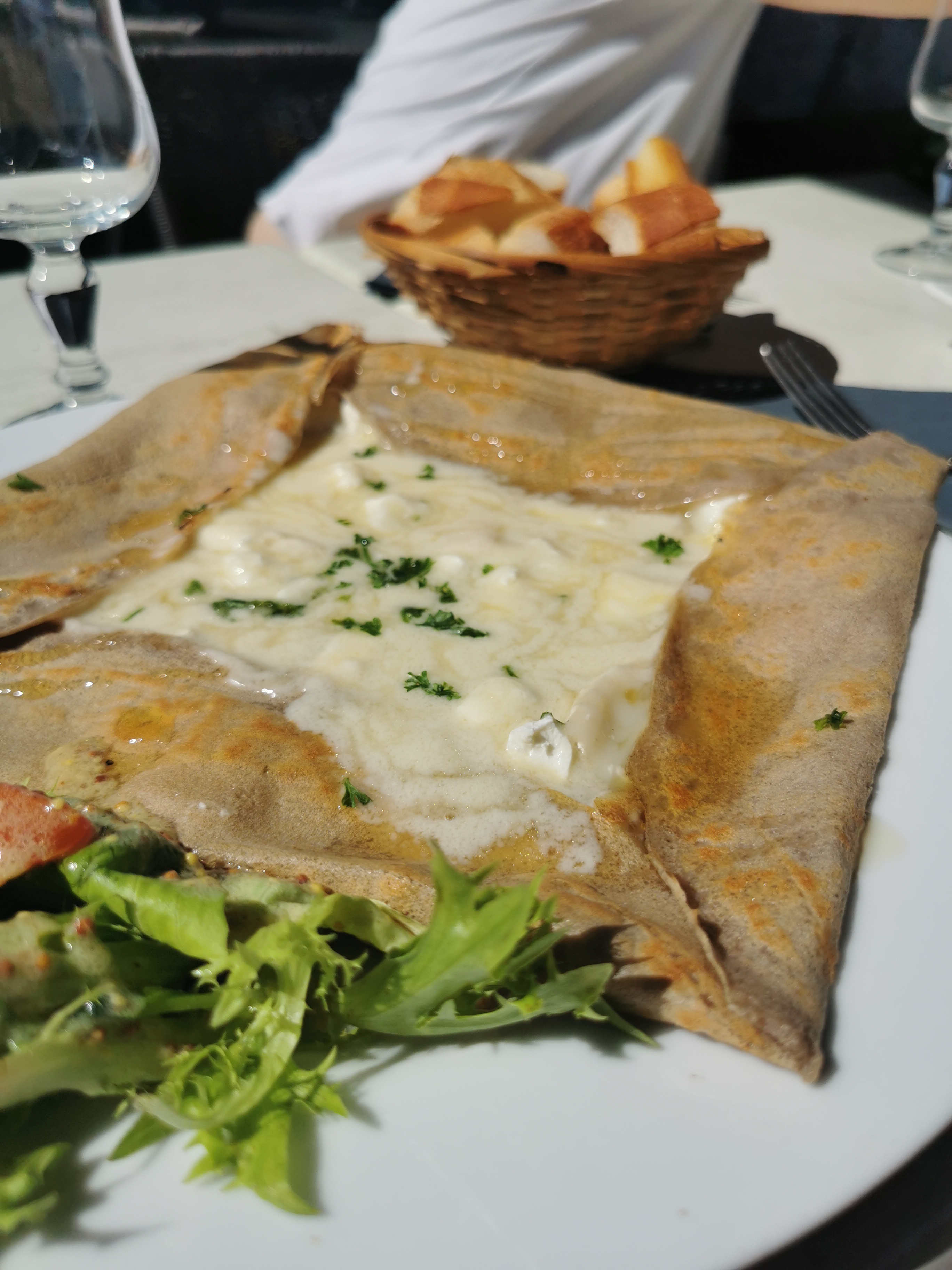 Nous hésitions à y aller en lisant tous les avis sur le service et la cuisine mais la vue en terrasse nous a poussé à nous faire notre propre avis. La vue est magnifique, la serveuse très accueillante et réactive. Nous avons testé moules au cidre, omelette et galette pour le salé, crêpes gaufres et sorbet pour le dessert. Tout était bon. Nous avons passé un agréable moment. Merci
