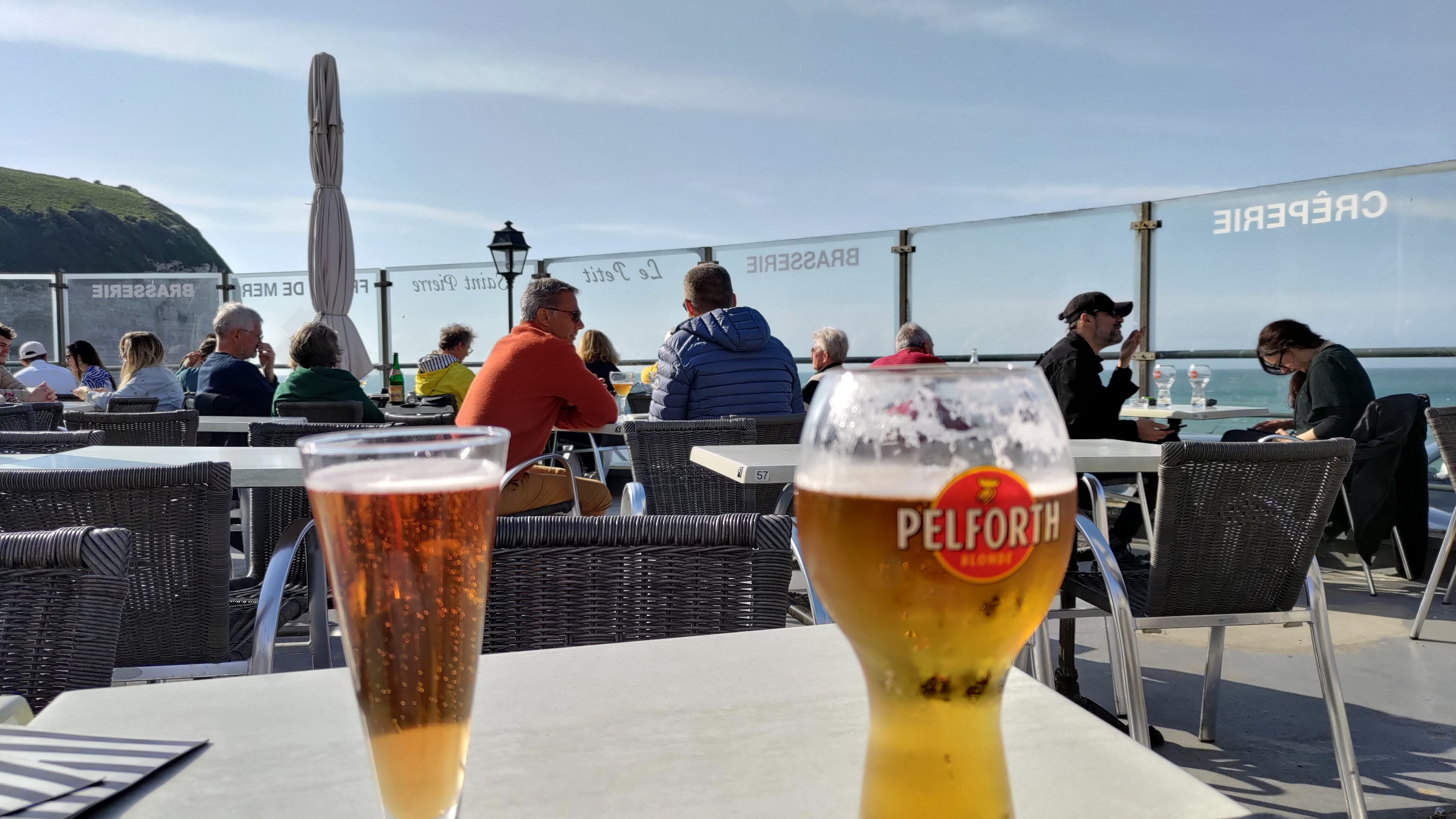Bel endroit pour prendre un verre ou manger. Bien placé vue sur la mer et falaise. Et quel bon accueil un grand merci aux serveuses qui nous contribuent au moment agréable que nous avons passé