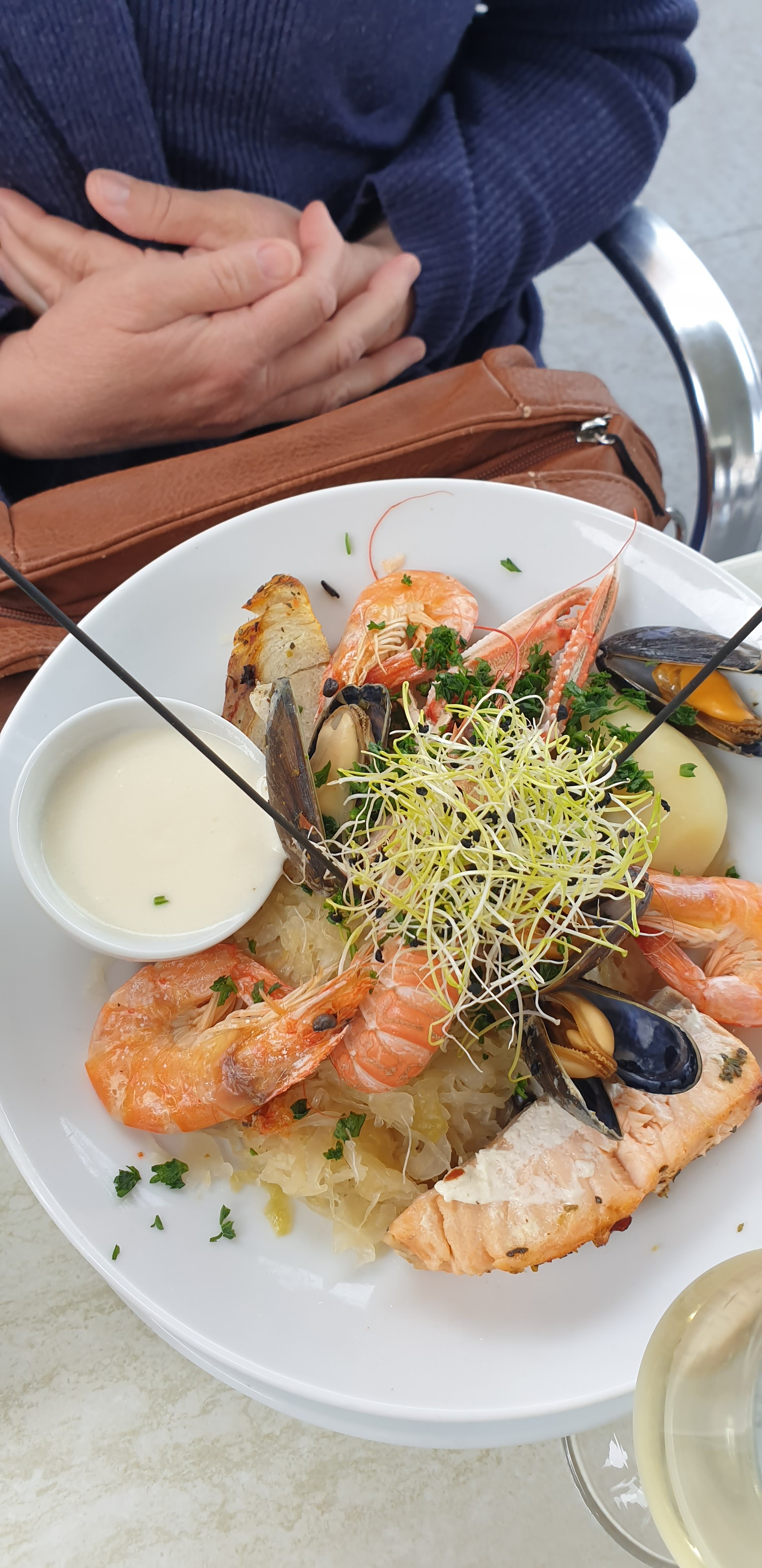 Très bien mangé une bonne choucroute de la mer avec une marmite....et un bon petit vin blanc...