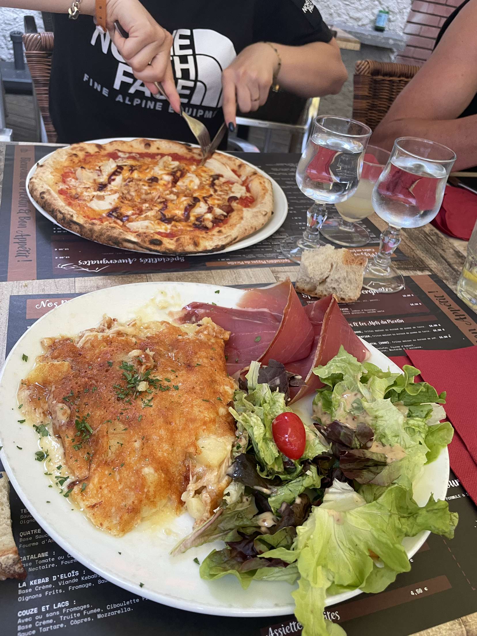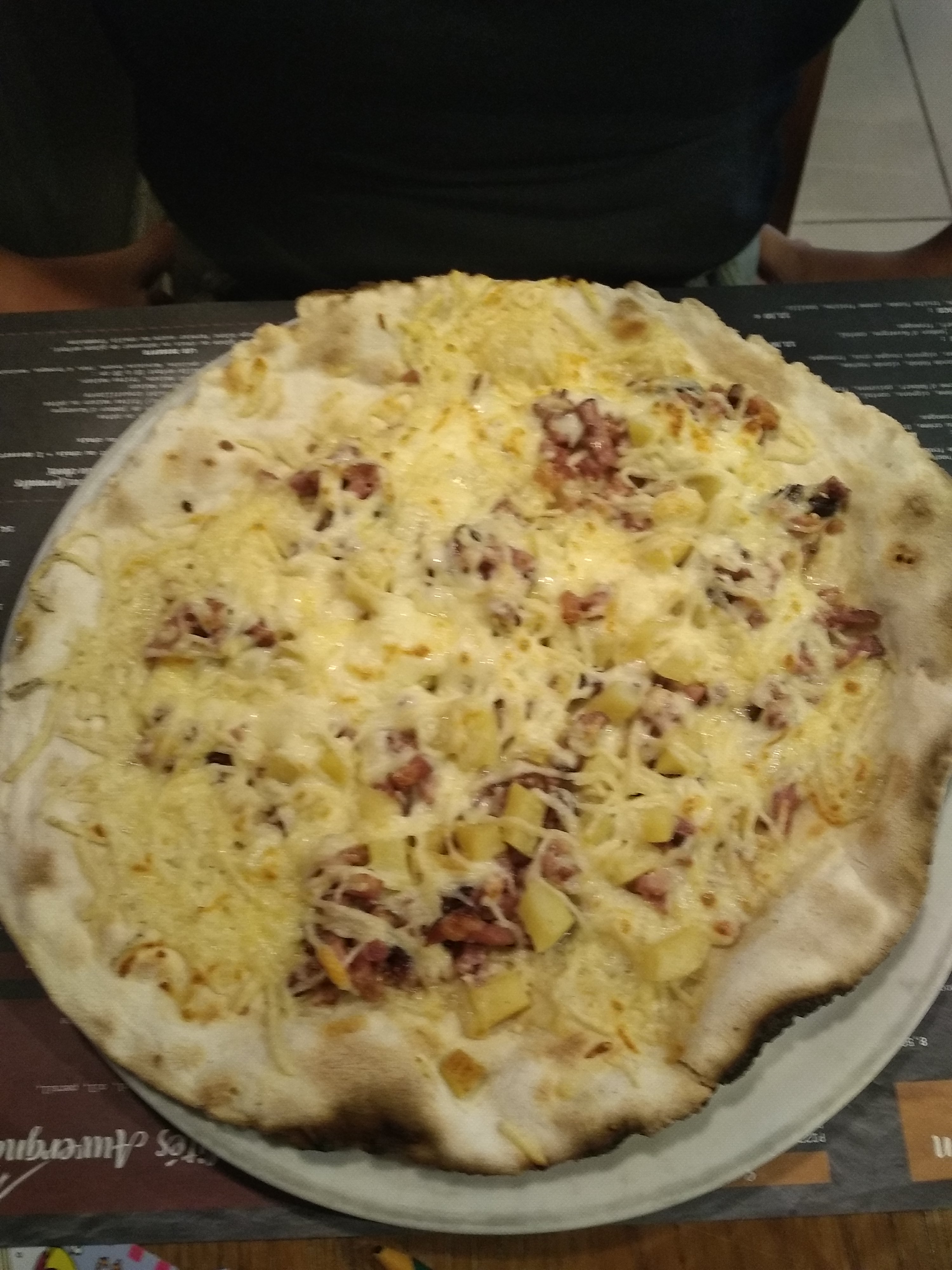 Bonnes pizzas a la truffade. Dessert très bon. Mais glace sans goût. Service très bien organisé. Une personne s'occupe des boissons et l'autre des plats. Nous avons mangé en terrasse sous un superbe soleil mais a l'ombre des parasols quand même😅. Personnels très accueillants et le patron aussi🤗