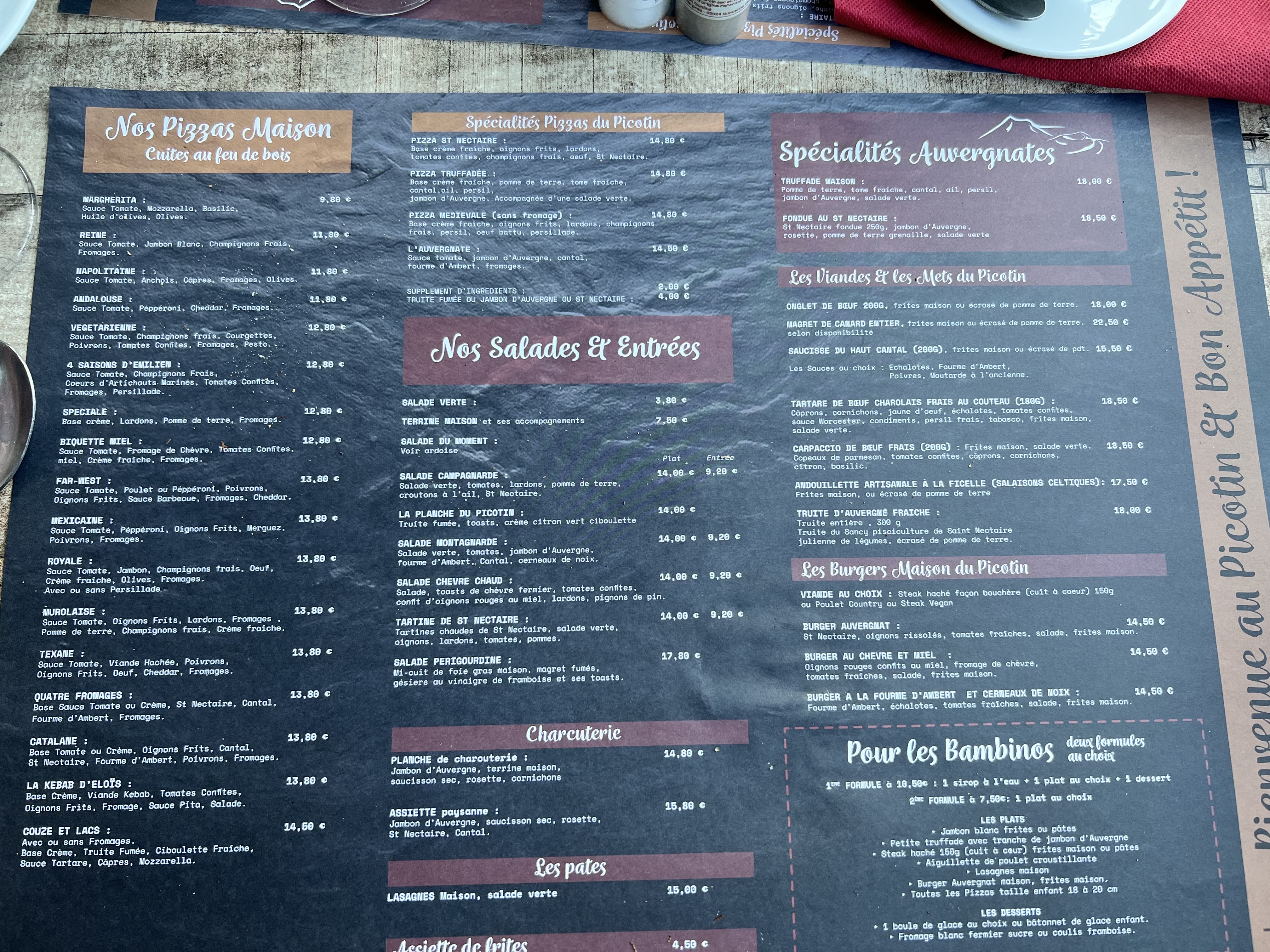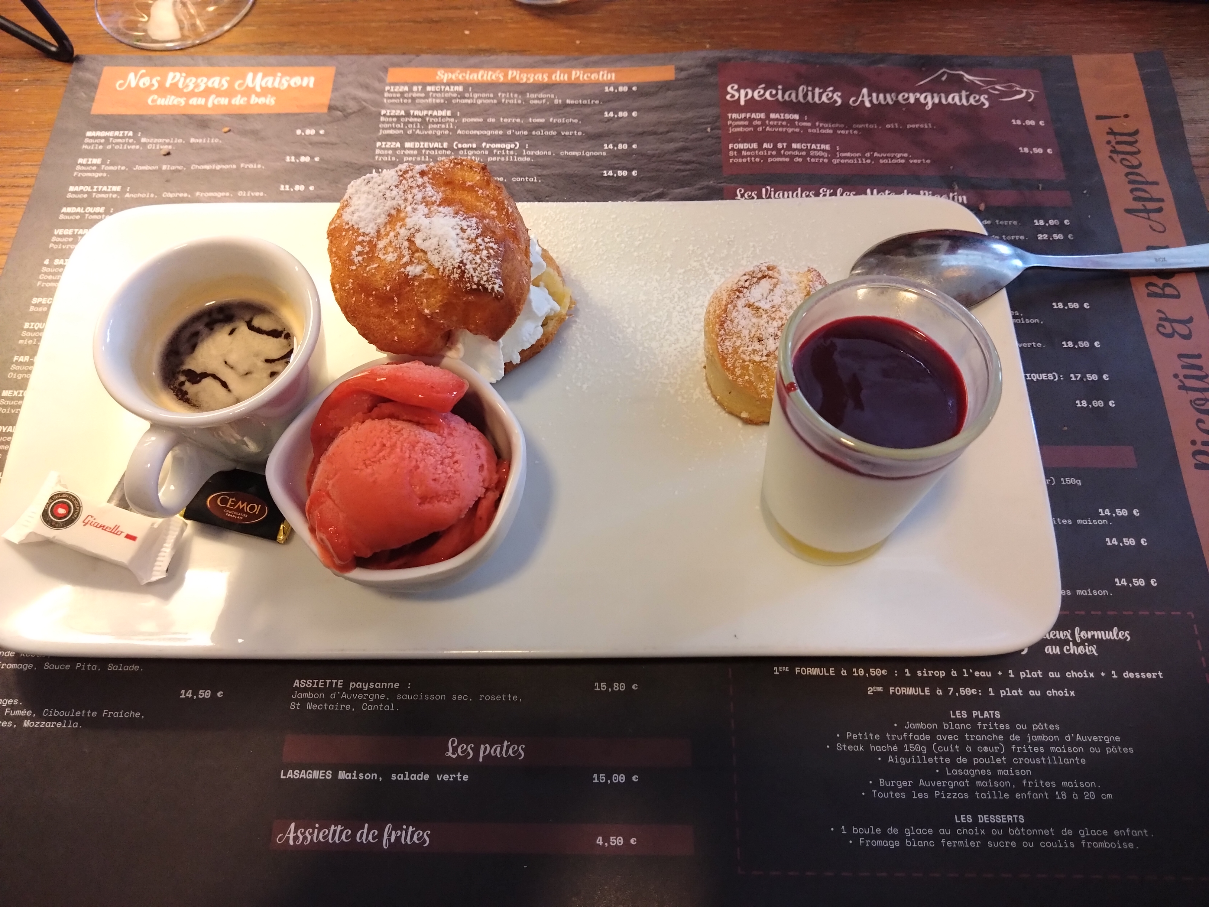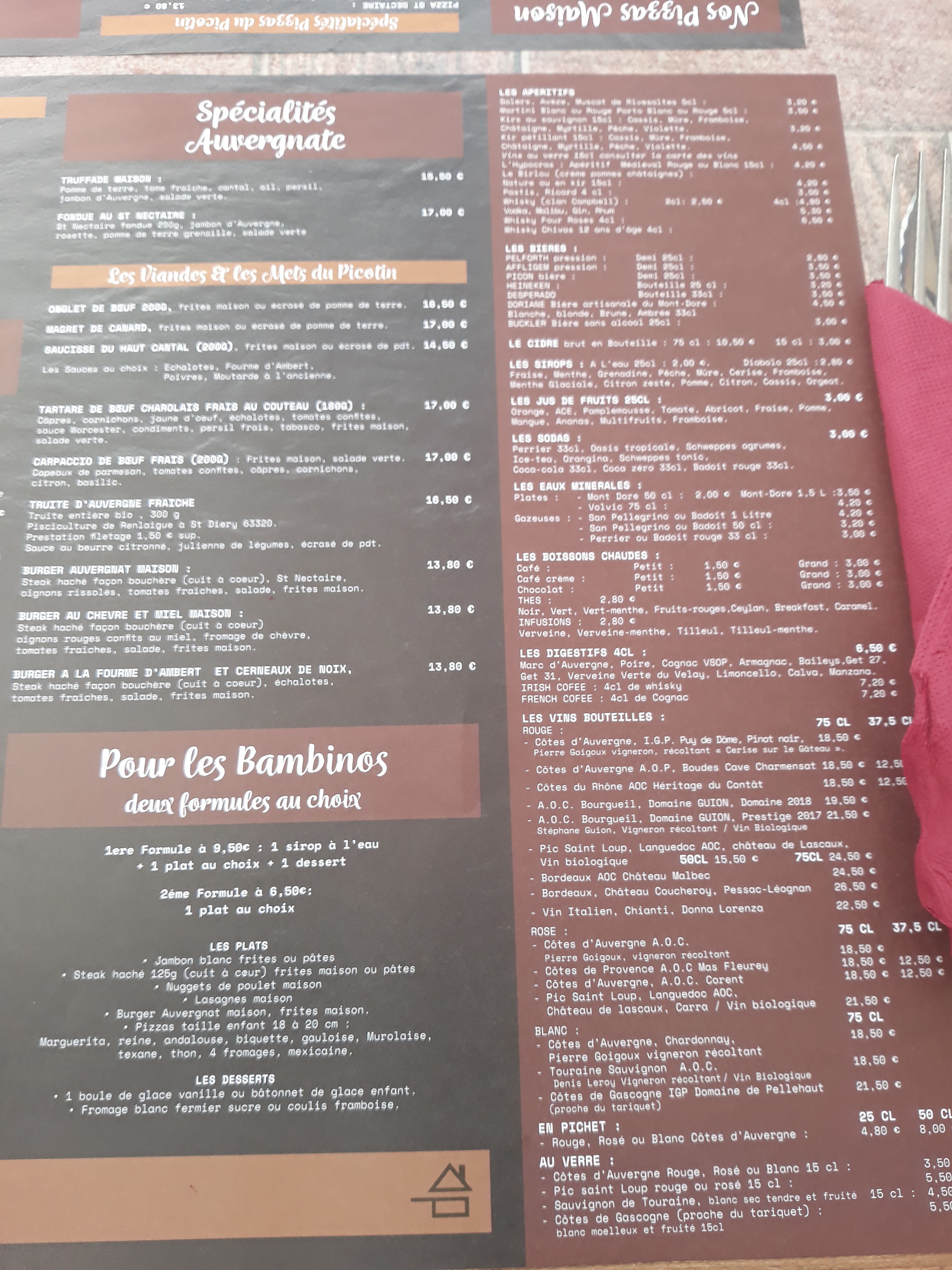 Je ne m'attendais pas à autant de monde à Murol et ce restaurant refusait du monde. J'ai toutefois trouvé une place en terrasse. Prix corrects et accueil très sympathique, notamment pour les enfants à qui on apporte crayons de couleurs et coloriage. Attention, comme je le précise pour la visite du château, se garer en cette saison n'a rien d'évident.