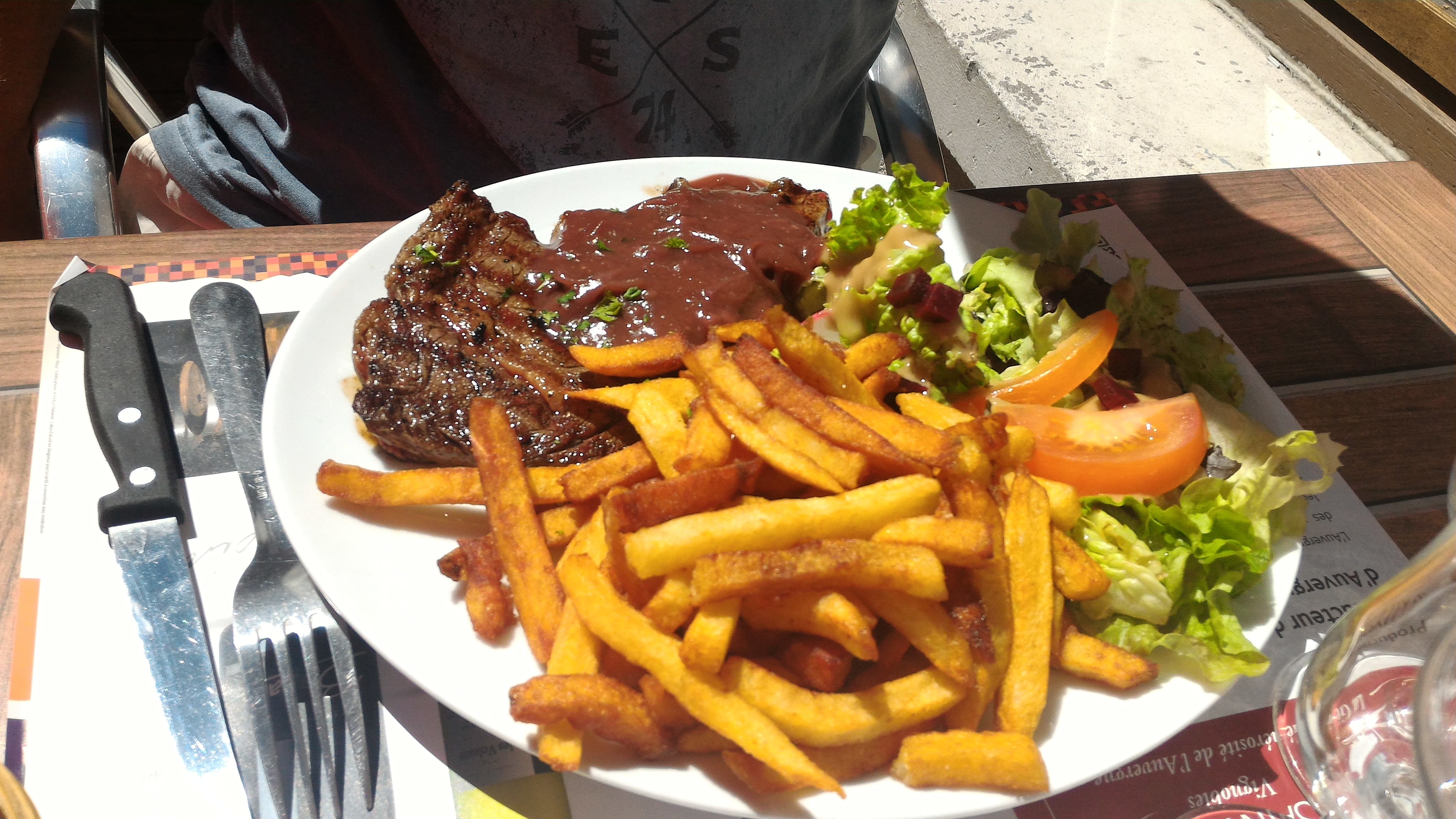 Nous avons très bien mangé, l' onglet était très tendre et la salade bien garnie. Juste un bémol pour le service car nous avons attendu très longtemps pour le dessert. (Apparament ils avaient un serveur en moins)