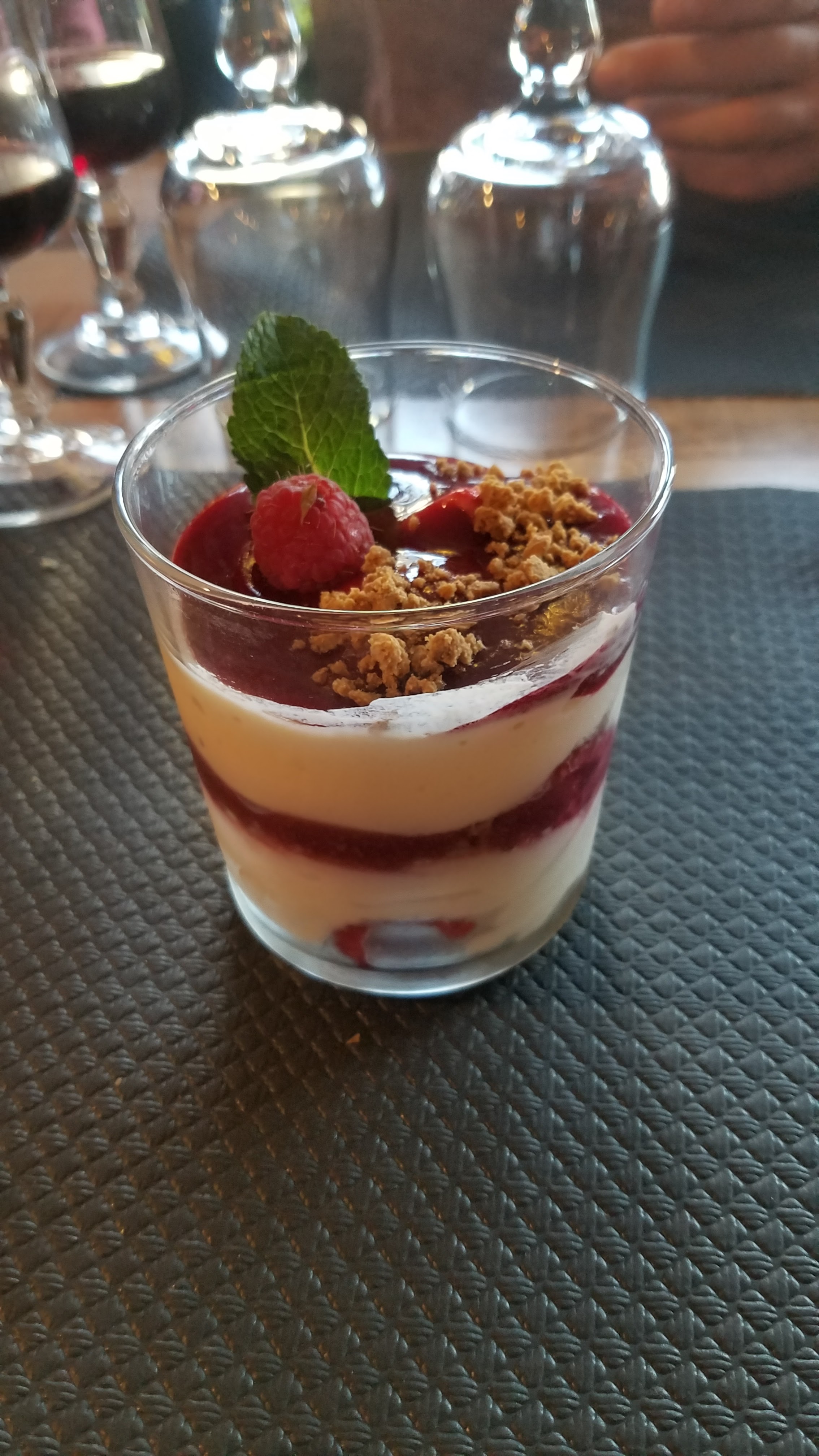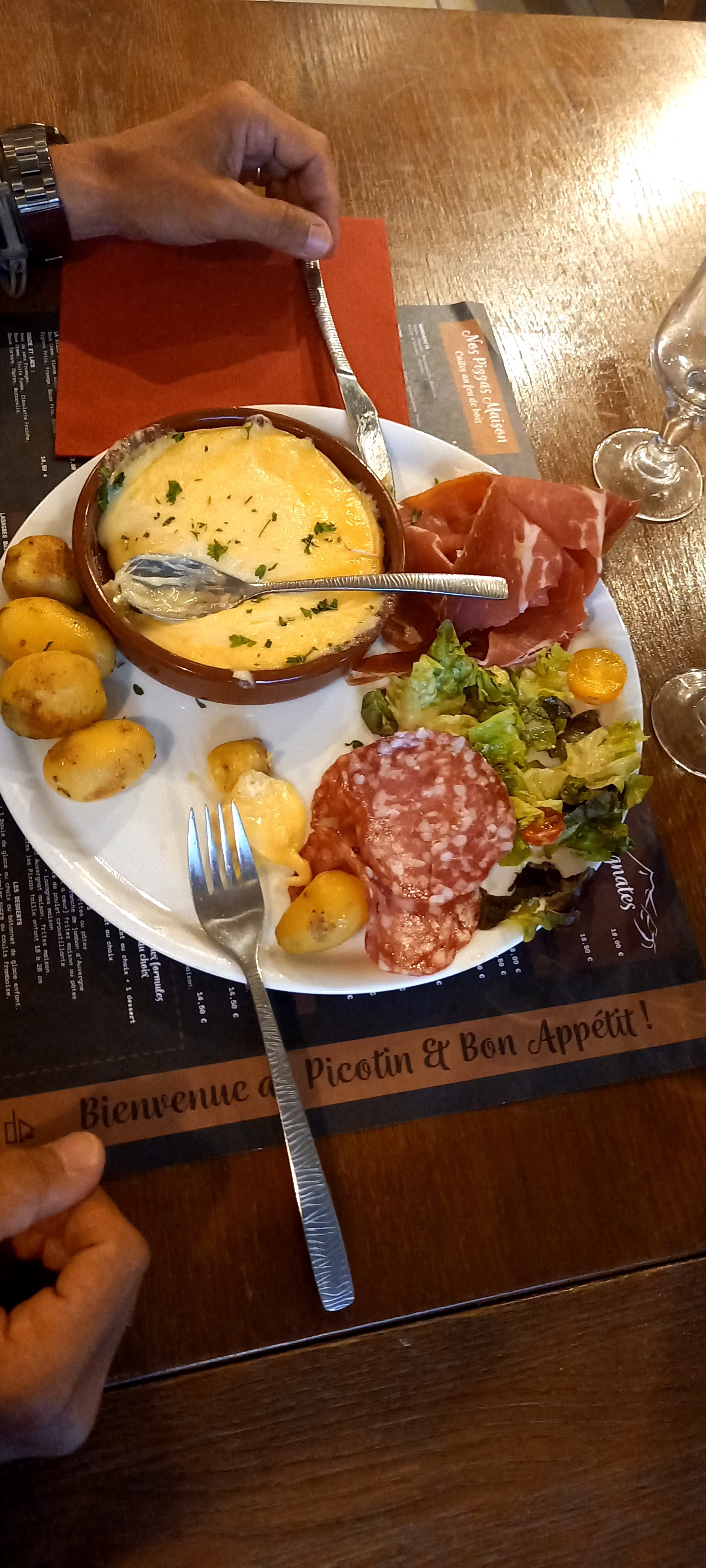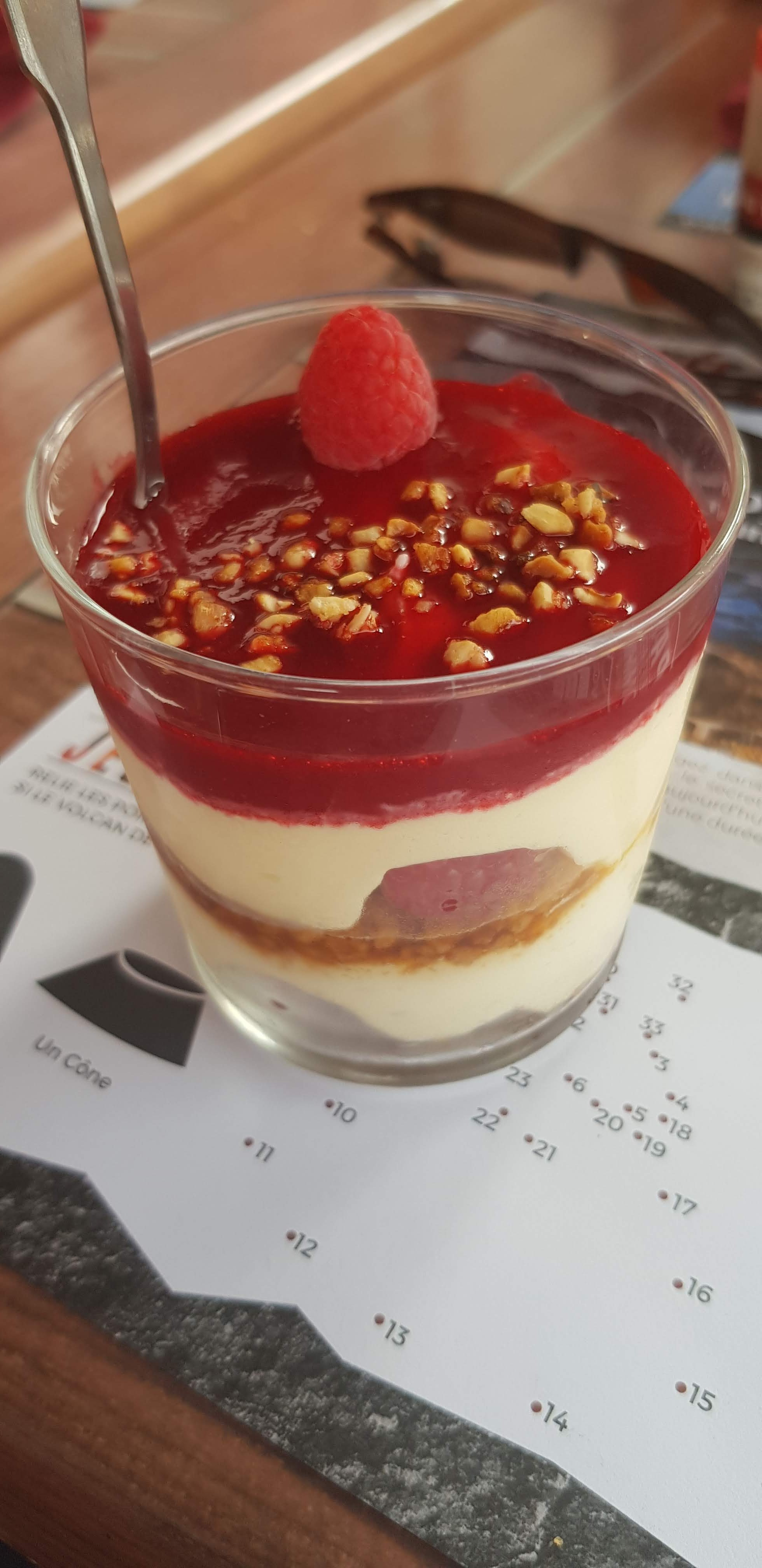 Avons manger une excellente truffade généreuse accompagnée de salade et jambon de pays, et fini sur un super tiramisu framboise fraîche 😋..ceci dit .restaurant chaleureux et service efficace...je conseille vivement 👍