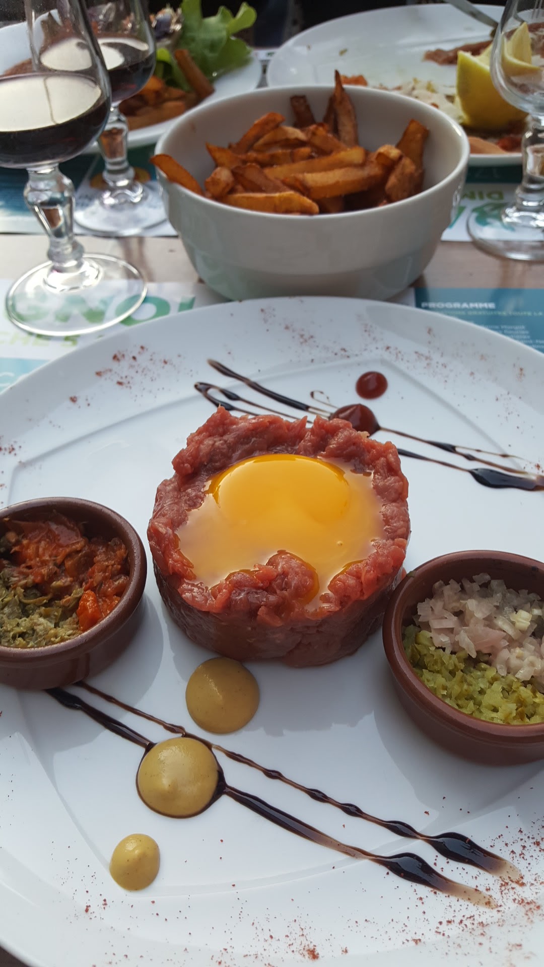 Déjeuné pris à emporté, dommage car en partant du château on appel pour prévenir que l’on arrive, on nous dit pas de soucis en terasse (bien que la météo ne soit pas clémente). Nous arrivons 5 minutes après, et là finalement ils ne prennent plus personne car déjà trop de monde, non pas par rapport aux places assises, mais par rapport au personnel. C’est très respectable, dommage de ne pas nous avoir prévenu au téléphone. Un groupe de personnes âgés même pas encore assis qui circulent dans le restaurant comme chez eux, un peu dommage pour l’ambiance.