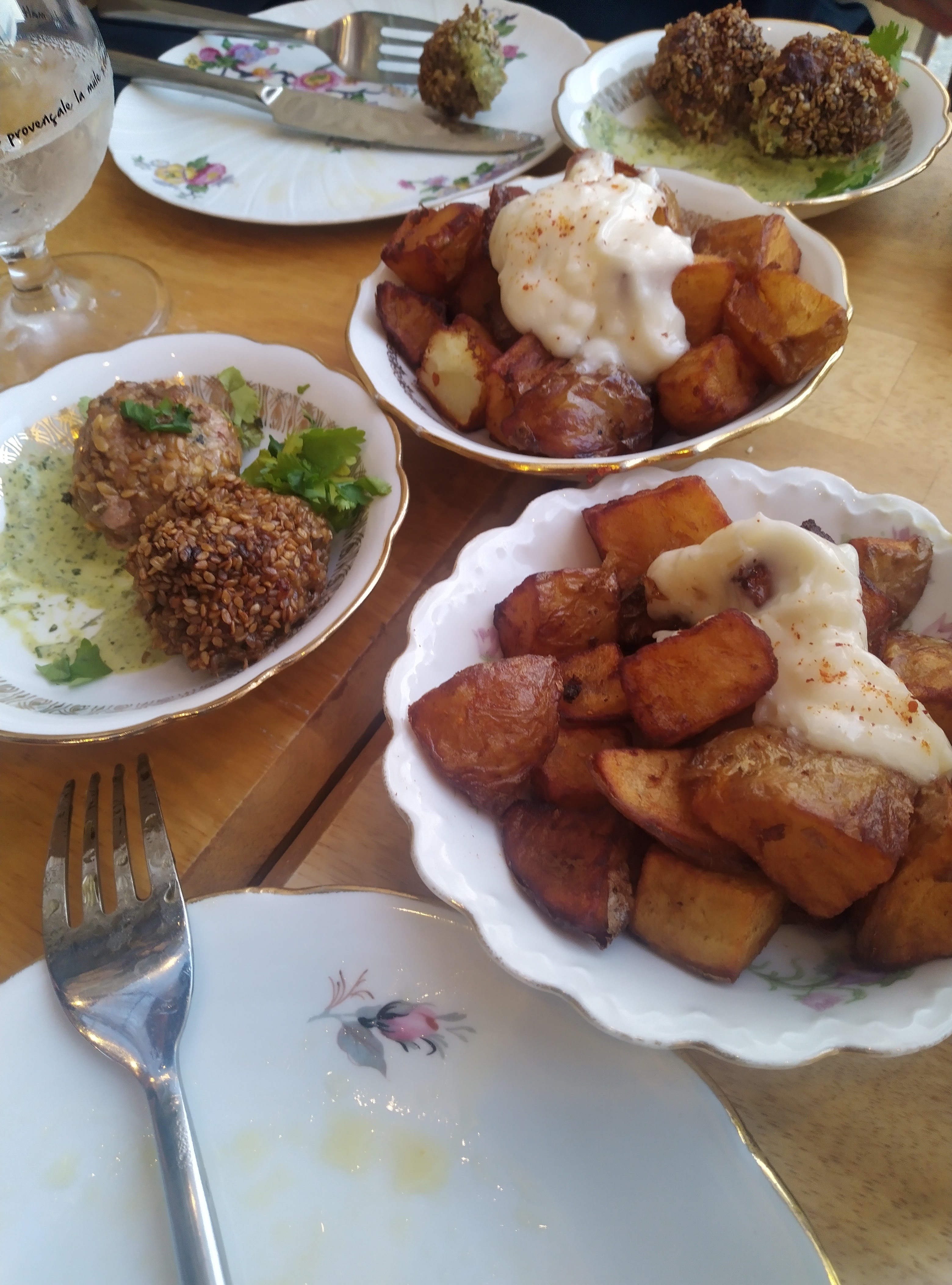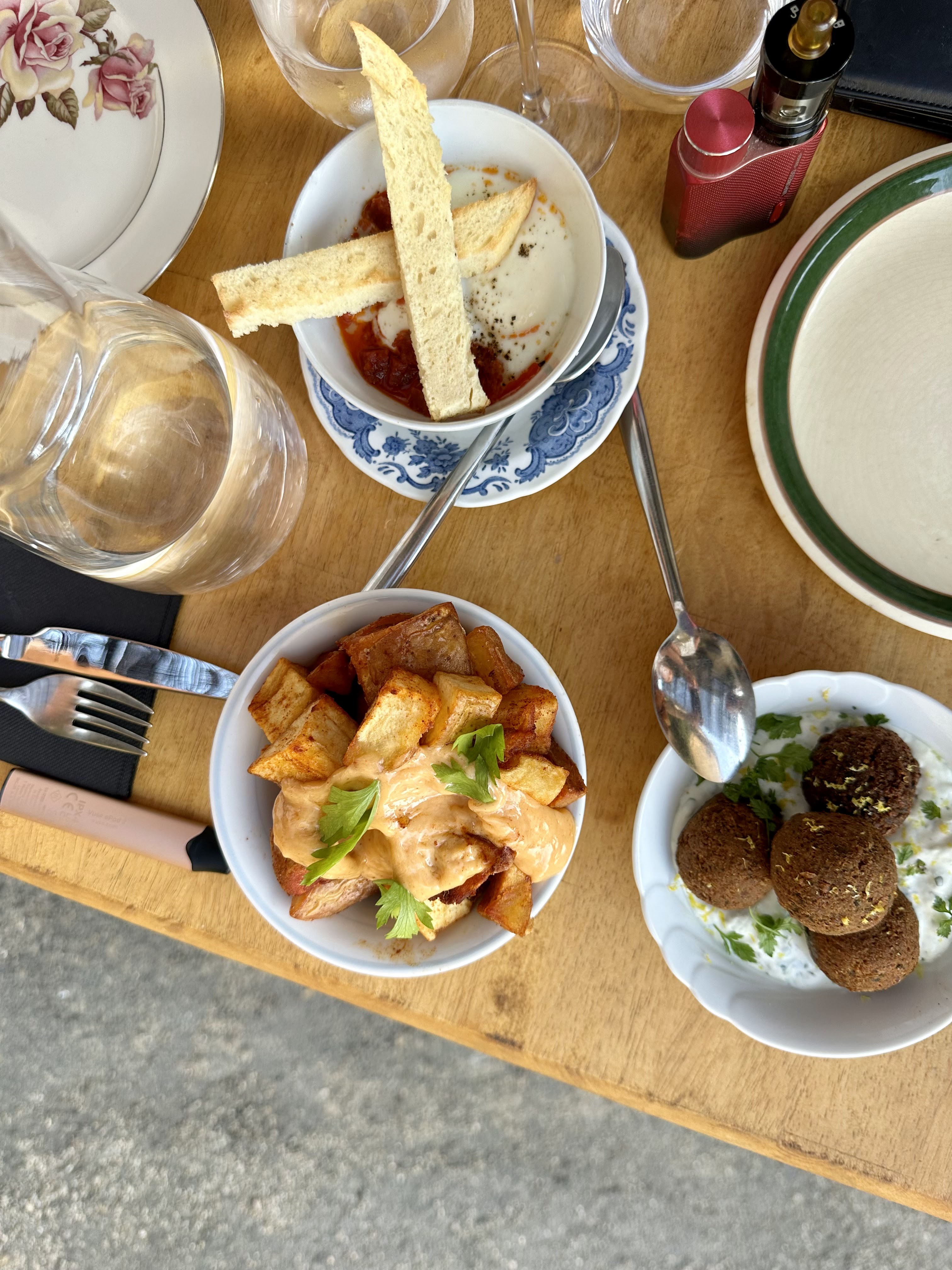 Très déçu, soyez près à payer 20euros pour 5 falafels (grande assiette à partager) je n'imagine pas ce que doit être la petite assiette... Idem pour les patates bravas. Très mauvais rapport qualité prix. Service pas agréable non plus.