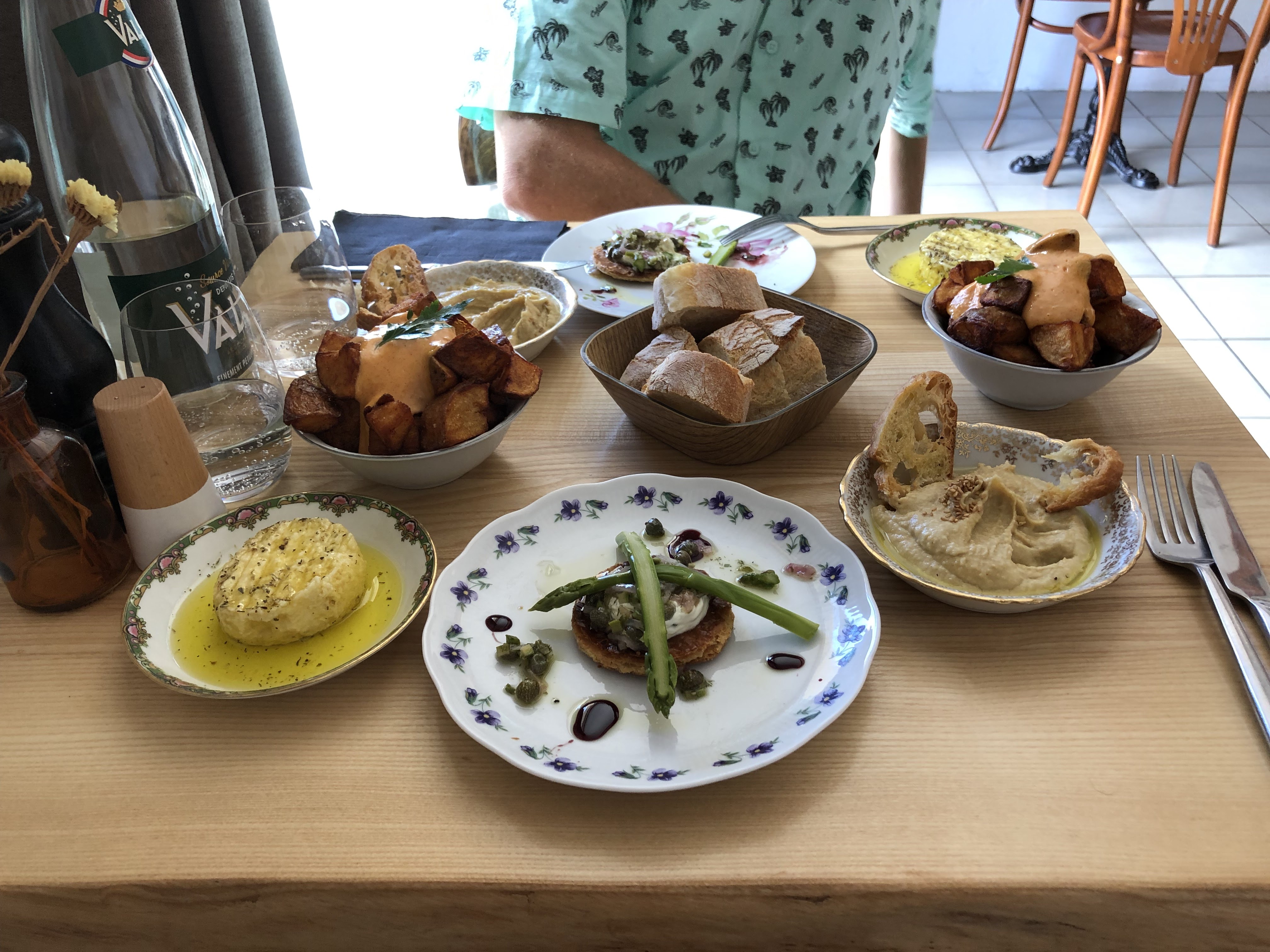 Je vous laisse regarder la photo avec envie. Que dire de plus, une magnifique table bien remplie. On comprend les recommandations de pas plus de 3 tapas par personne car la table est minuscule. Tout était bon et fait maison avec soin. On s’est régalé et petite note au vin au verre qui était excellent. Je rajouterai que la personne qui nous servait était adorable avec les enfants à la table d’à côté. Une douceur et gentillesse qui donne envie de revenir dans ce lieu si nous sommes amenés à revenir dans les parages.