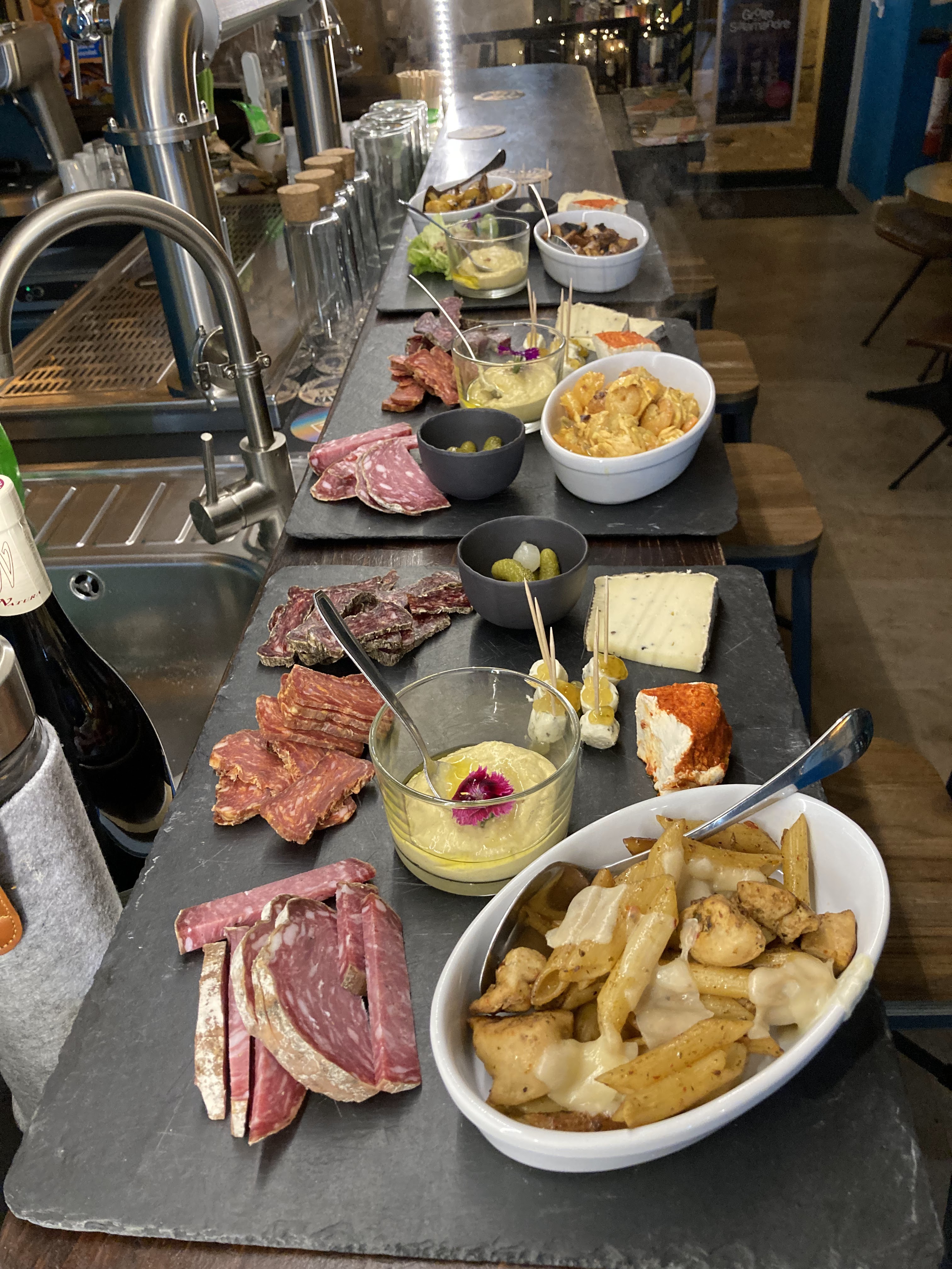 "Grande variété de bière craft + tapas préparés sur place (trop bon en vrai) Petite préférence pour la limonade qui est excellente. Endroit idéal pour un apero le soir ou une pause à midi. Je recommande."