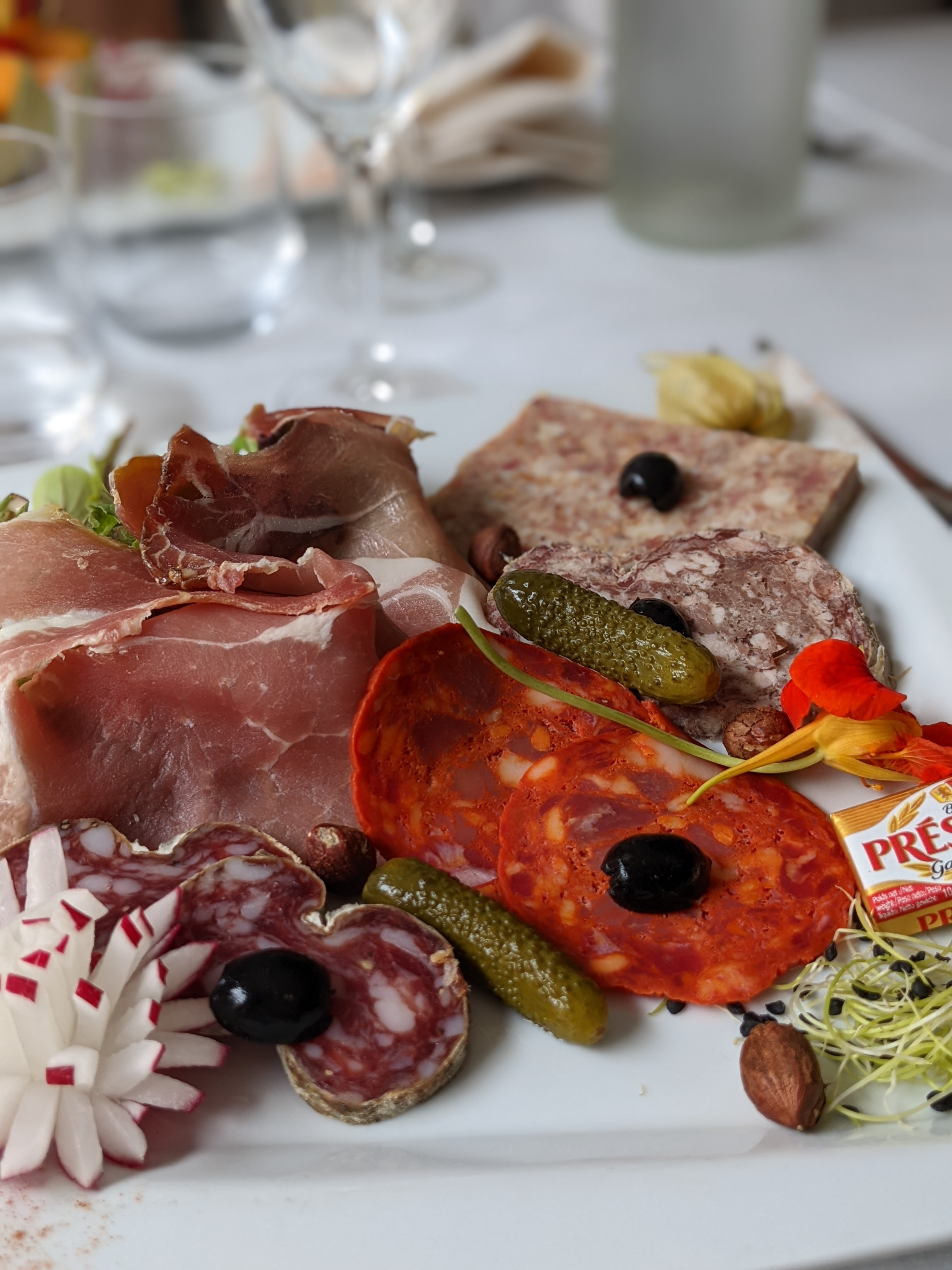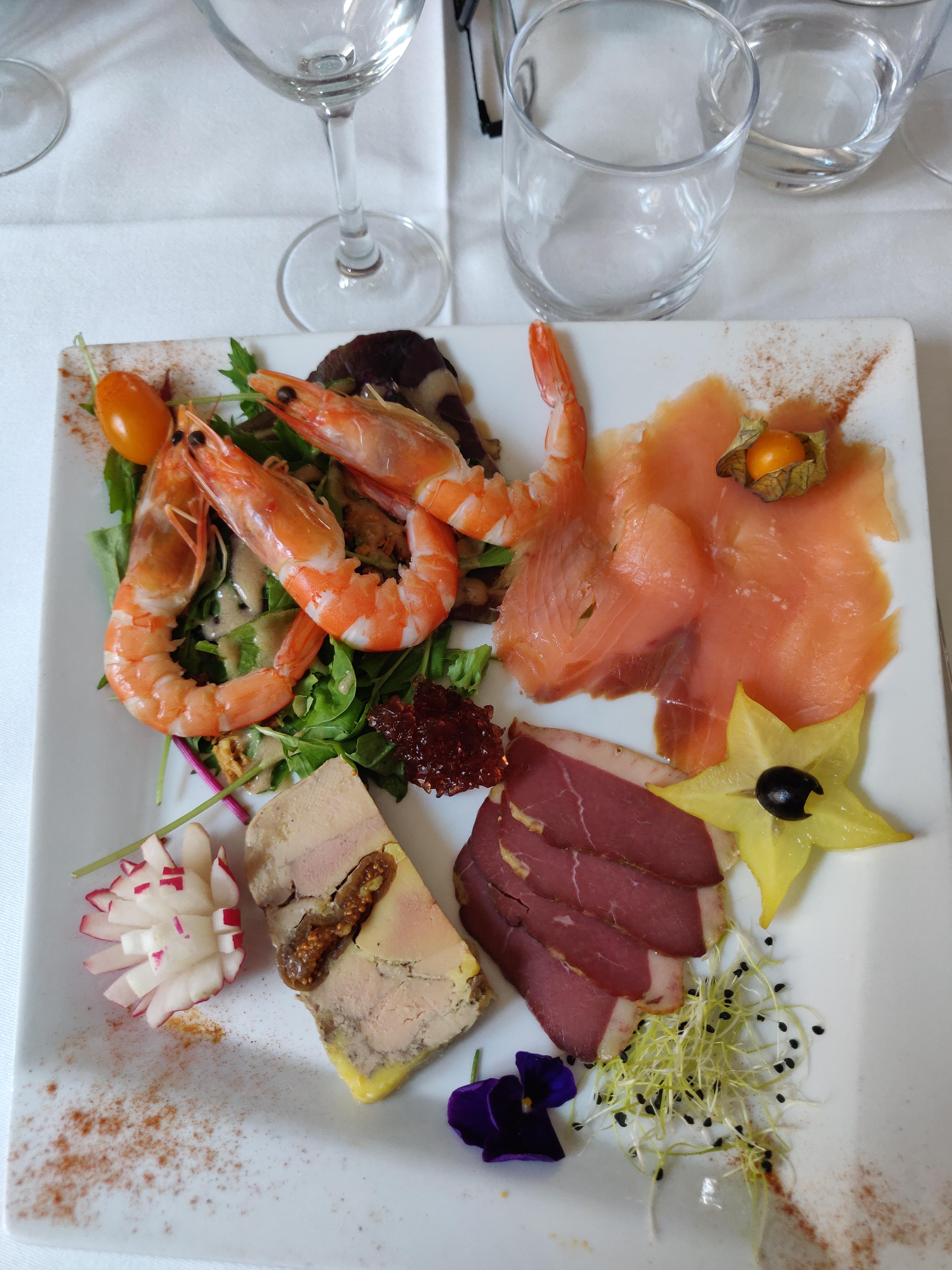 Bien. Quelques petites choses à améliorer comme le beurre emballé, la moutarde en sachet ou la cour d'entrée qui ne sont pas à la hauteur des plats. On se régale ! Je recommande.