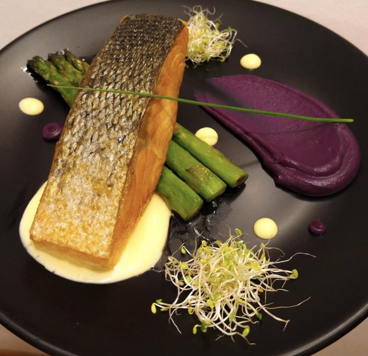Cuisine raffinée plat magnifique à regarder joli cadre service très bien à refaire