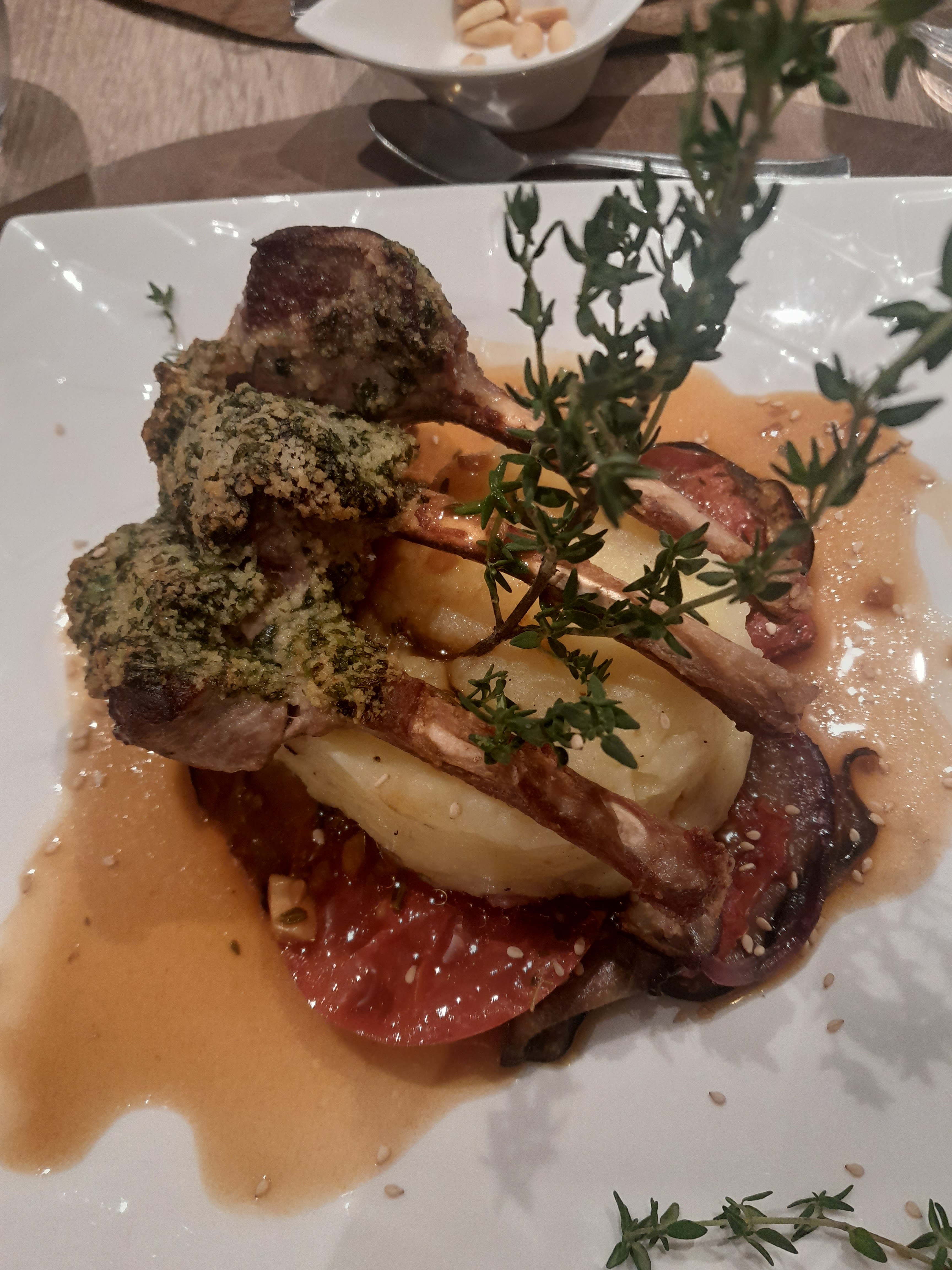 Plats raffinés aussi beaux que bons. Ambiance chaleureuse, on s’y sent très bien. Service professionnel, serveuse agréable et souriante. La propreté est tout comme le reste parfait. Je recommande !