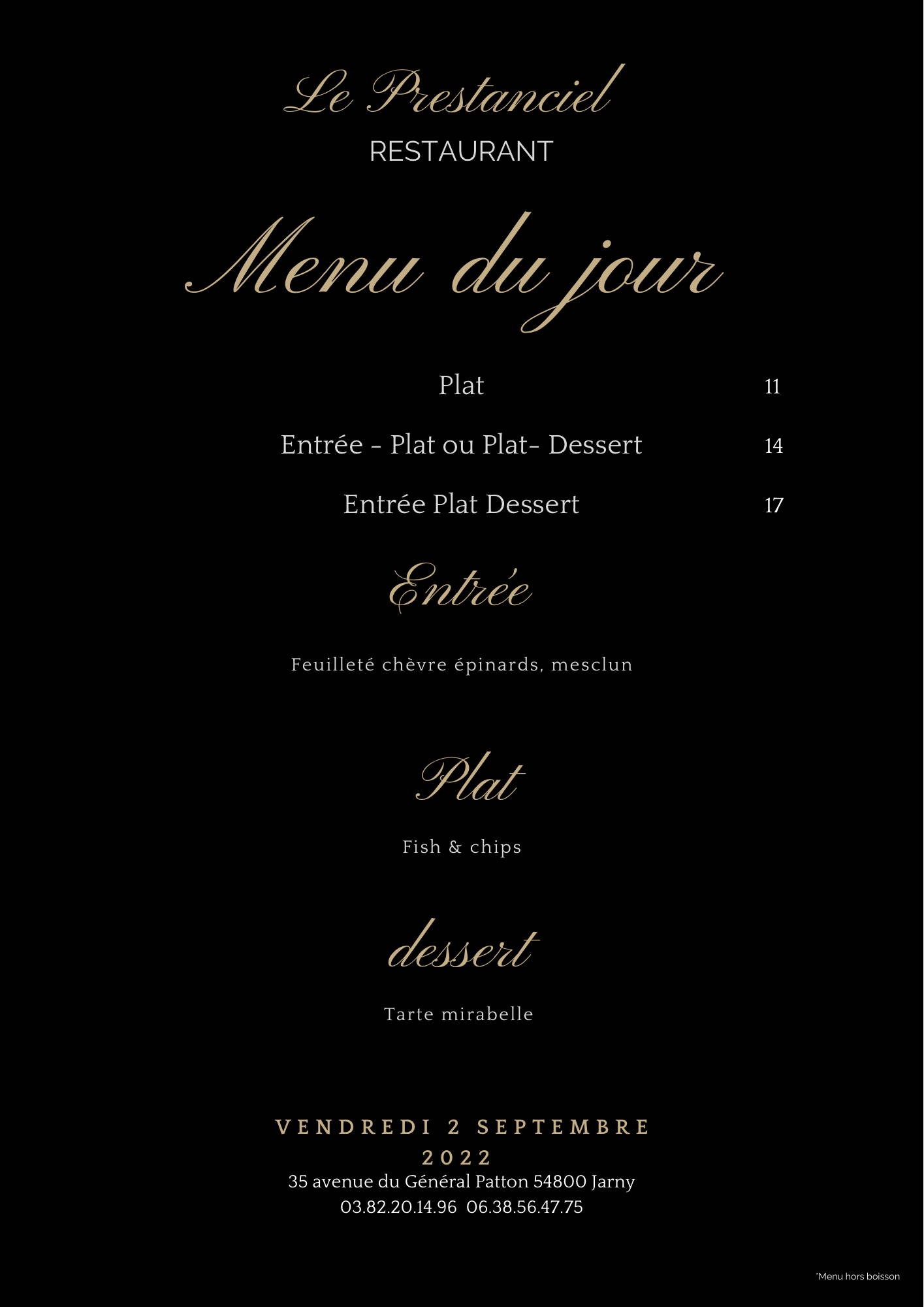 Menu au top de l'entrée au dessert