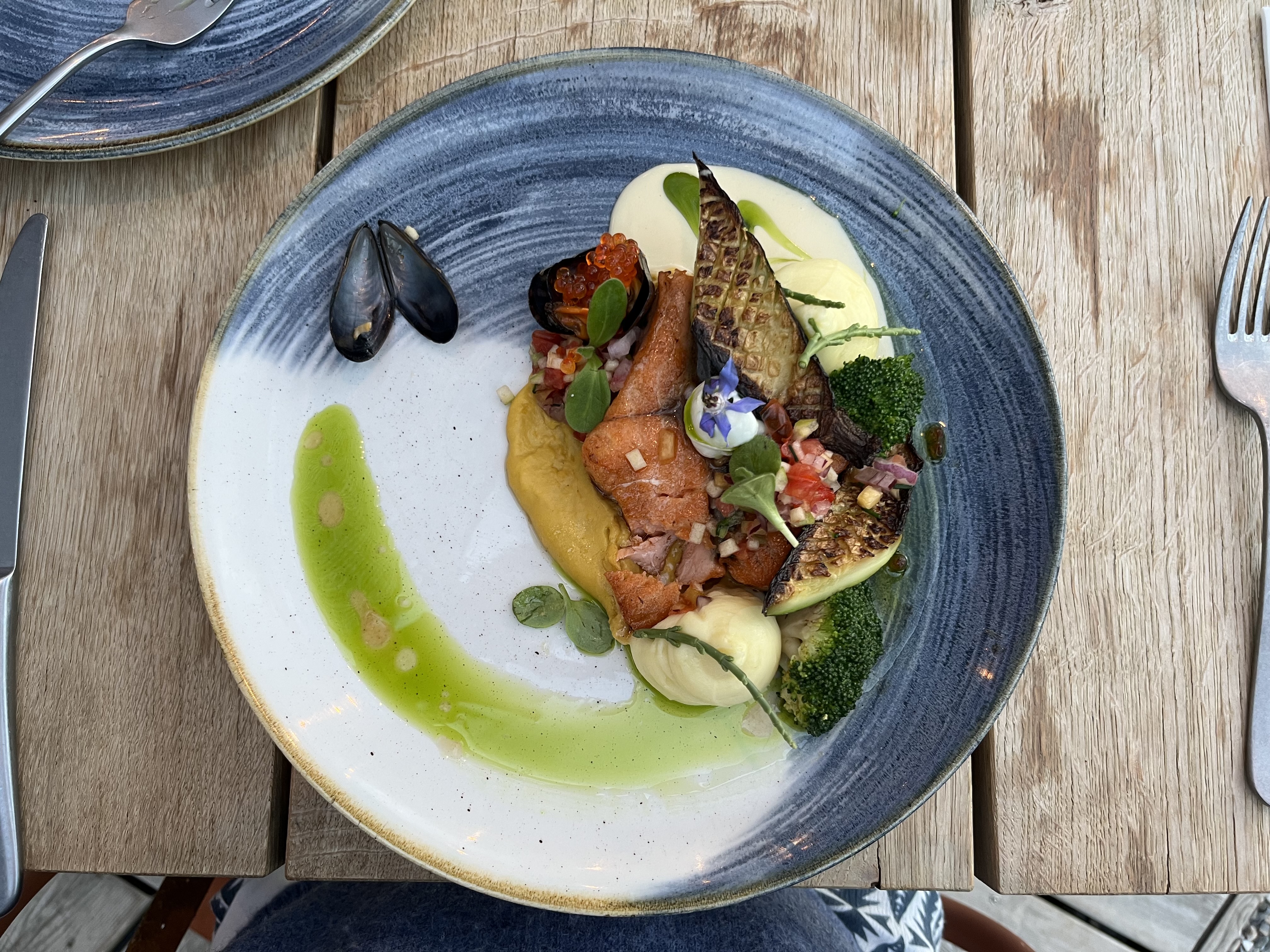 Posté le 11/08/2022 à 05:41"Une belle découverte pour ce restaurant idéalement située en bord de lac! La vue est sublime, le personnel de salle serviable et sympathique ! Le saumon gravlax très esthétique, quoique le sablé au charbon végétal assèche un peu , et reste entre les dents😉 Le Pésson du Leman est extraordinairement bien exécuté et les assemblages de goûts fort bien trouvé ! J'ai trouvé ce plat très joliment poétique... Les desserts sont une vraie douceur au palais. Une cuisine audacieuse et surtout qui respecte scrupuleusement un approvisionnement très très LOCAL! J'adhère complètement à cette volonté du chef! Bravo et merci Chef et l'équipe ! Continuez ainsi! Et nul doute que nous reviendrons bientôt !"